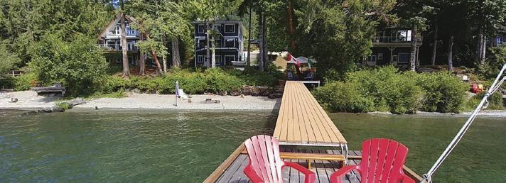 The Strathcona Park Lodge and Outdoor Education Centre, an off-thegrid resort, with 65 hectares on Upper Campbell Lake, was the dream of Jim and Myrna Boulding, who opened it in 1959 as a fishing lodge. In the 1970s, its mission broadened into outdoor education and now the centre has become internationally famous. The couple had five children and their son Jamie took over in 1993 as president with his partner, Christine Clarke, as executive director. The property was the first resort to exceed Green Tourism Standards; when we take possession of our new cottage overlooking Upper Campbell Lake, we realize that going green doesn’t necessarily mean compromising comfort.