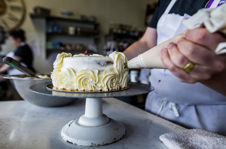was Yemma’s turn to hunt truffles under a row of hazelnut trees. “I’m looking for their ‘nose to ground’ cues; they scratch the earth under a tree, indicating where to dig,” explains Pete, who is looking for indicators like the absence of grass or a crack in the ground. He delicately scrapes the earth with a three-prong rake as the truffles can be small, and gently digs. “We typically bring back one or two—or none. Sure, it’s disappointing when you don’t find something but that’s part of the payoff when you hit the jackpot.” But Pete and Virginia