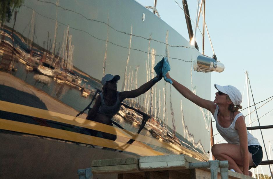 • Use a garden hose to check for deck leaks at ports and hatches. Renew caulk or gaskets as necessary.