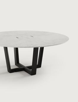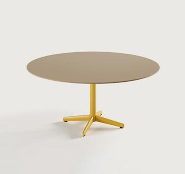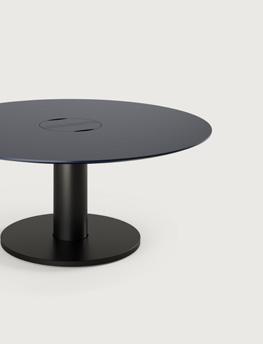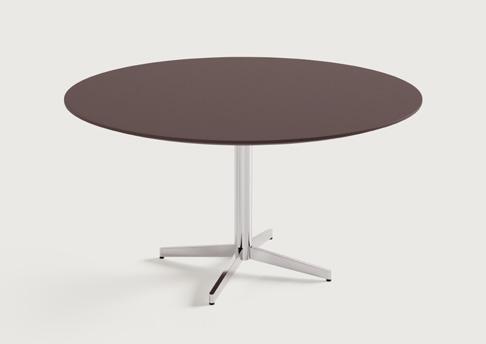 The circular tables are available as a single or four-column base that can support a range of standard or bespoke table-top sizes and shapes and can be customised in any metal or RAL powder-coated finish to complement your space.