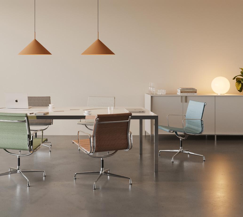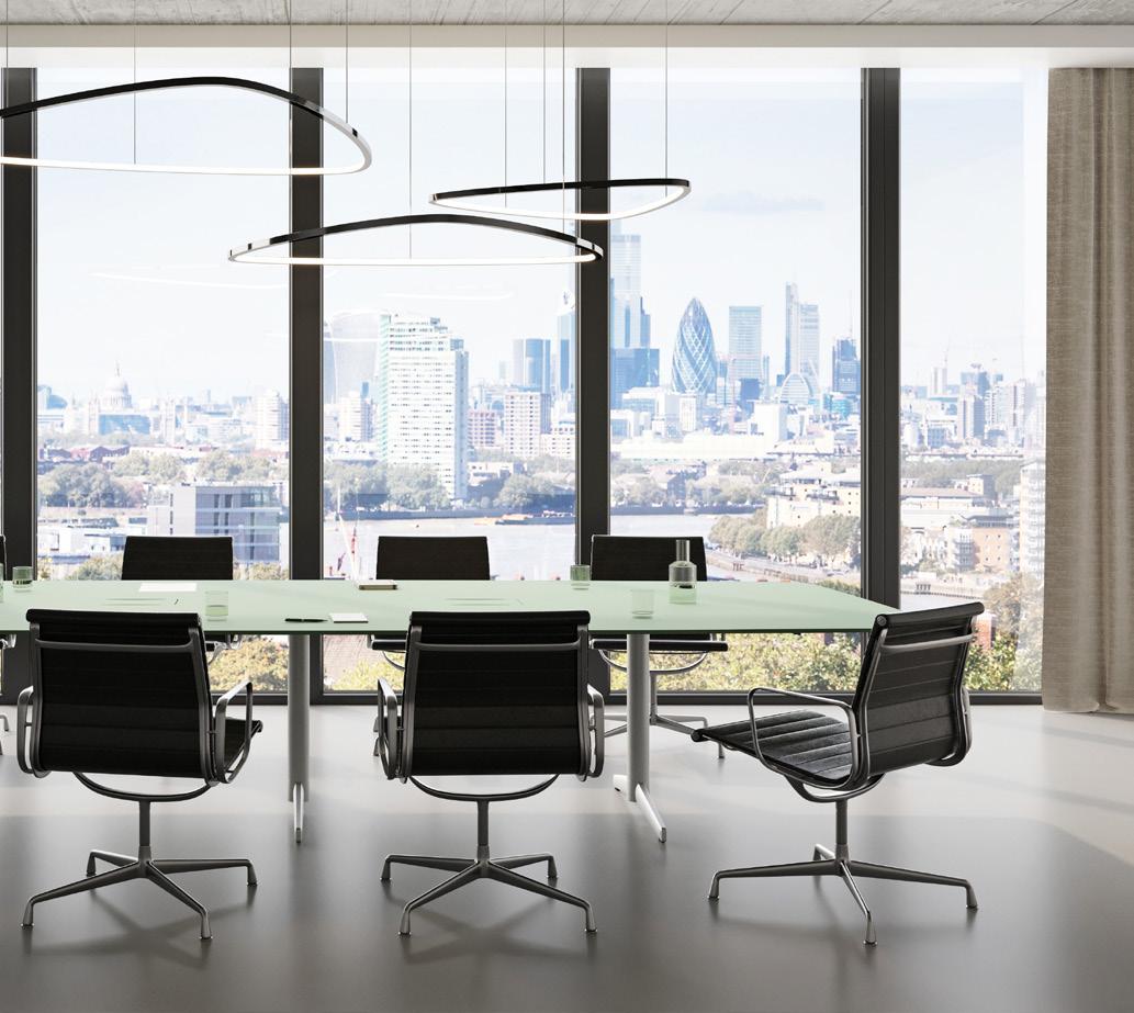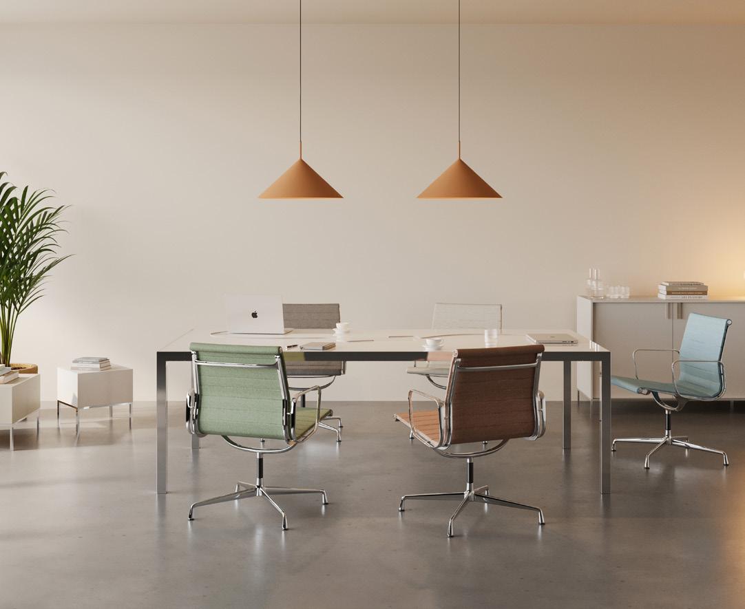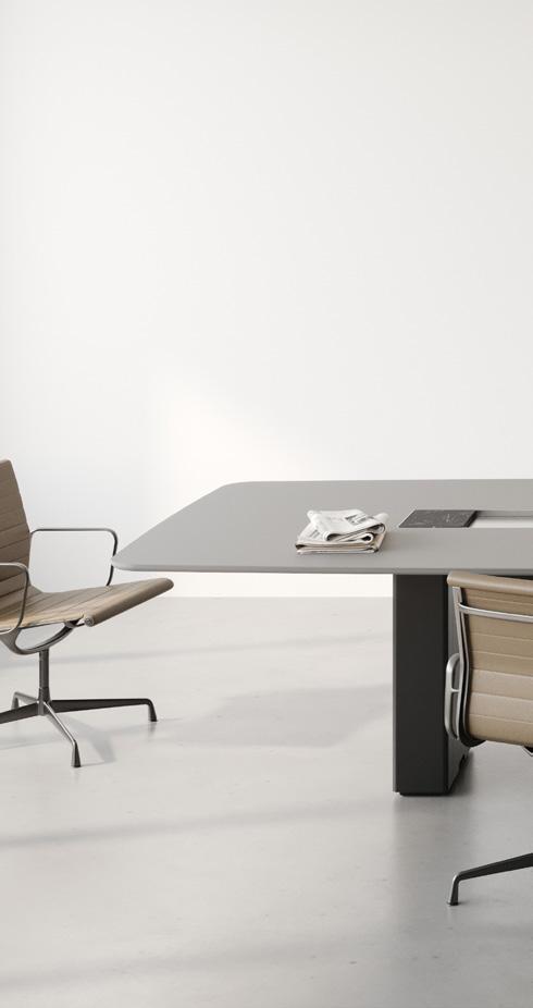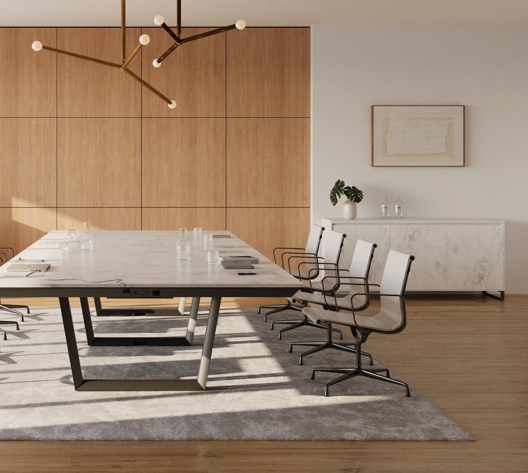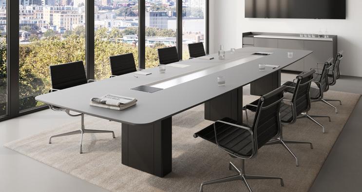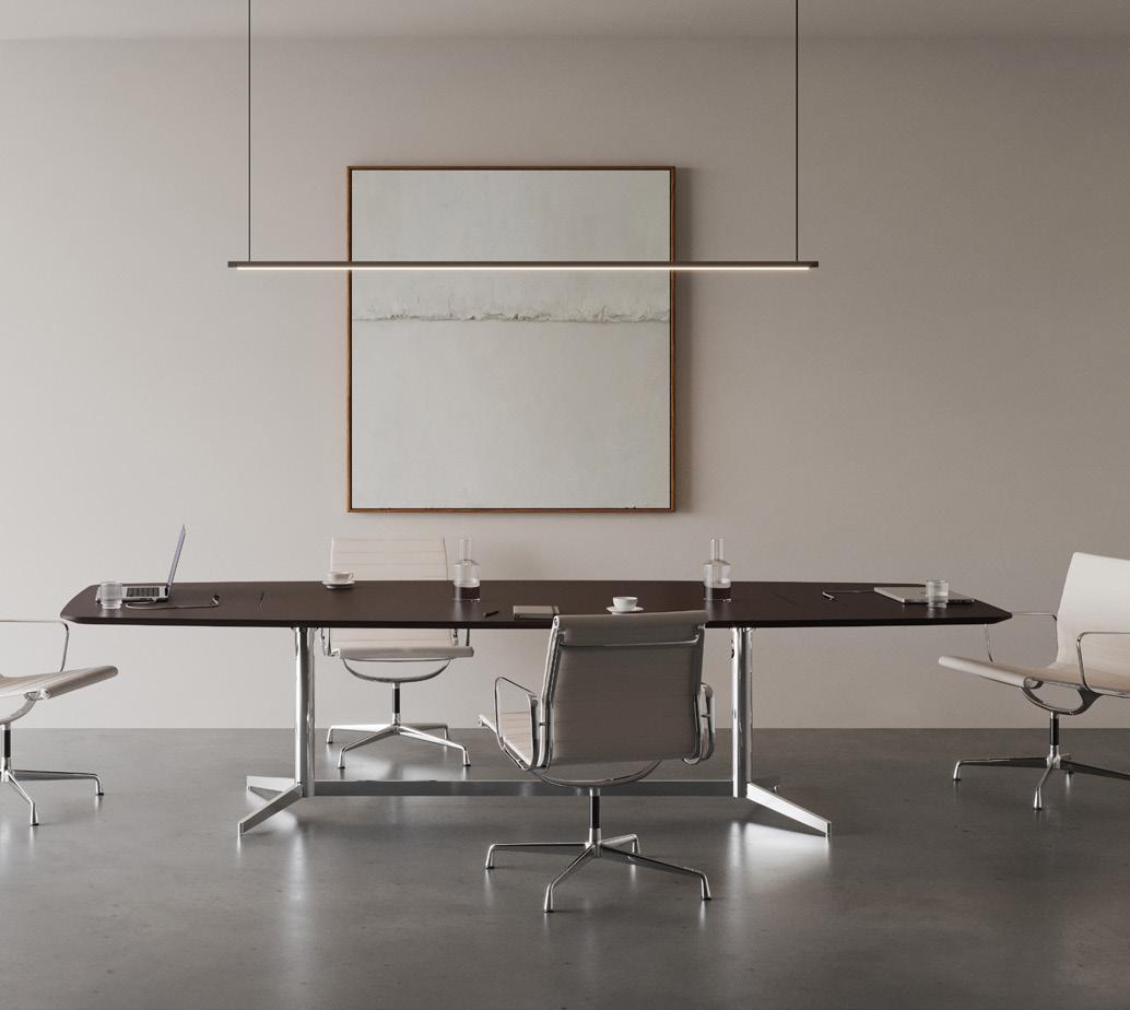The elegant steel bases are incredibly versatile and can be customised with any finish, size and style, from small meeting to large conference tables.