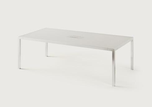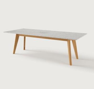 The tables are distinguished by the soft curves and clean lines of the extruded base. The bases are are strong enough to support a range of table top sizes and shapes, from small meeting to large boardroom. The base extrusions provide generous space for hidden cable management and can seamlessly integrate with any of our OPM connectivity pods, ensuring your meeting remains connected and cable-free.