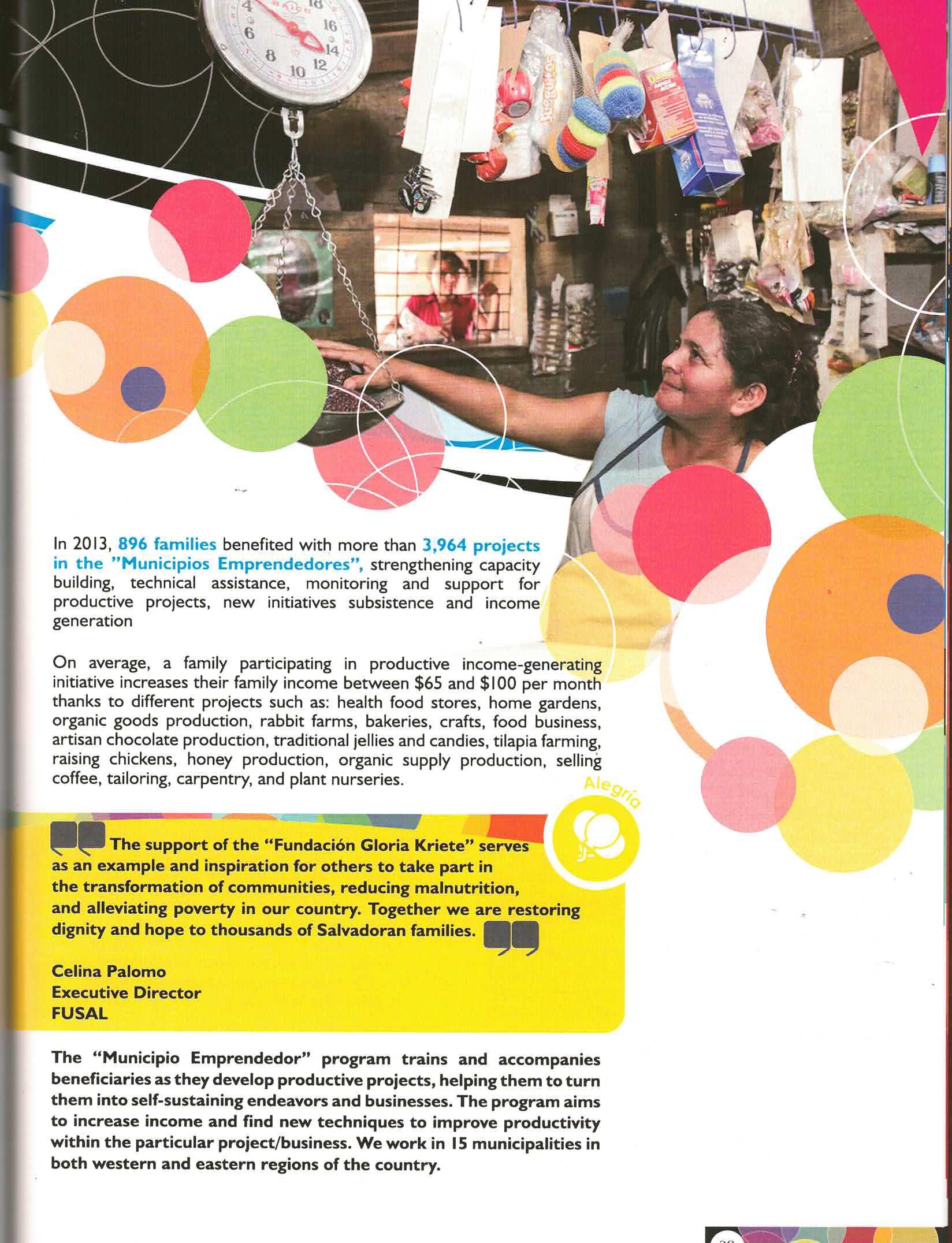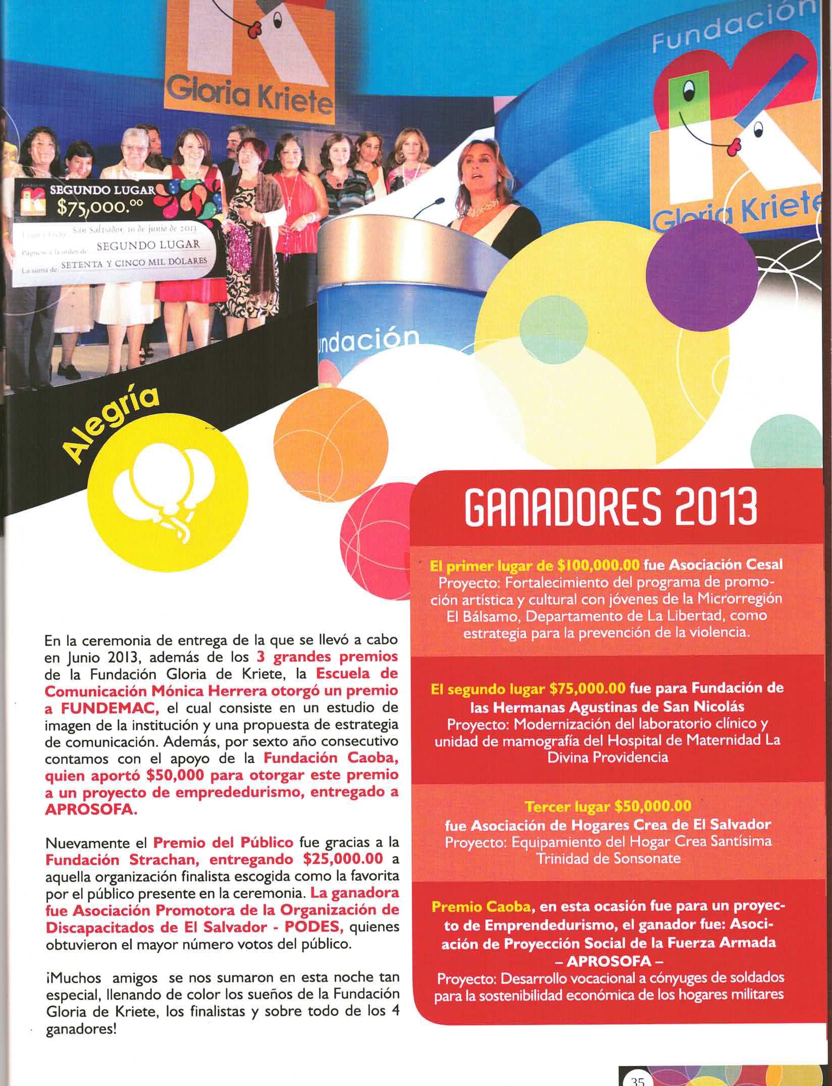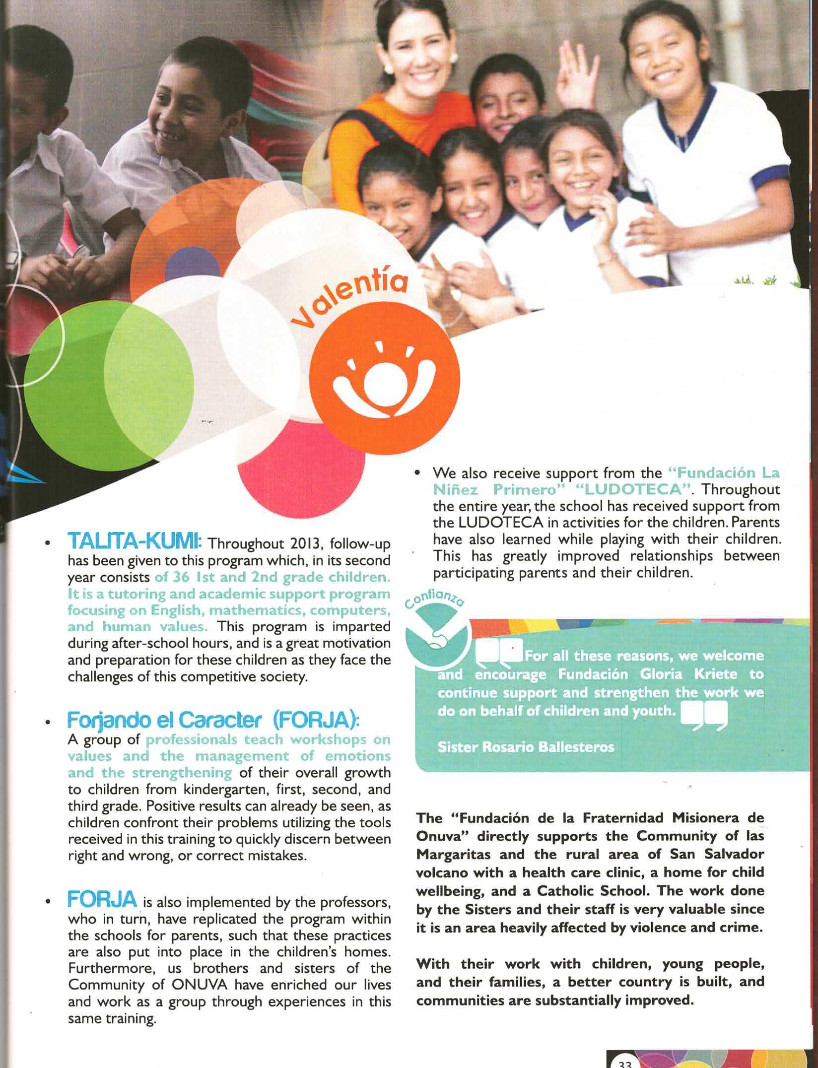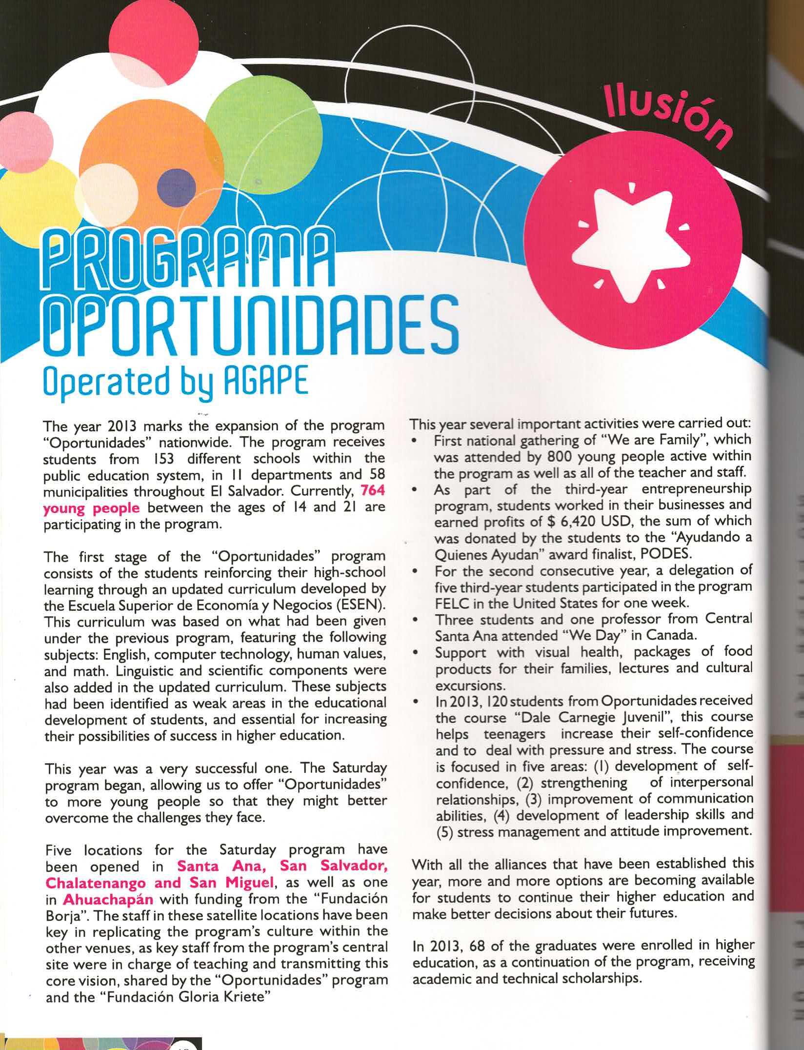 The following document presents a compilation of the activities carried out in 2013 by the Gloria Kriete Foundation through its programs and strategic alliances.