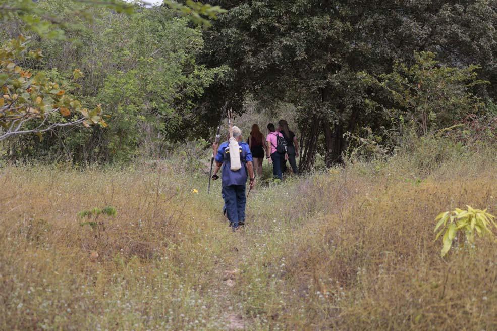 Fala com os olhos tristes sobre como a quantidade de aves diminuiu muito nos últimos anos. Com o avanço do “desenvolvimento”, ele já não escuta com tanta frequência o corrupião vermelho nem o campina. Na caminhada que fazemos, o ancião conta que está sempre pensando em como melhorar a vida de quem mora no território. Abre veredas e estradas, constrói casas e cultiva a terra. Mais do que cultivar, trata com afeto. É recíproco.