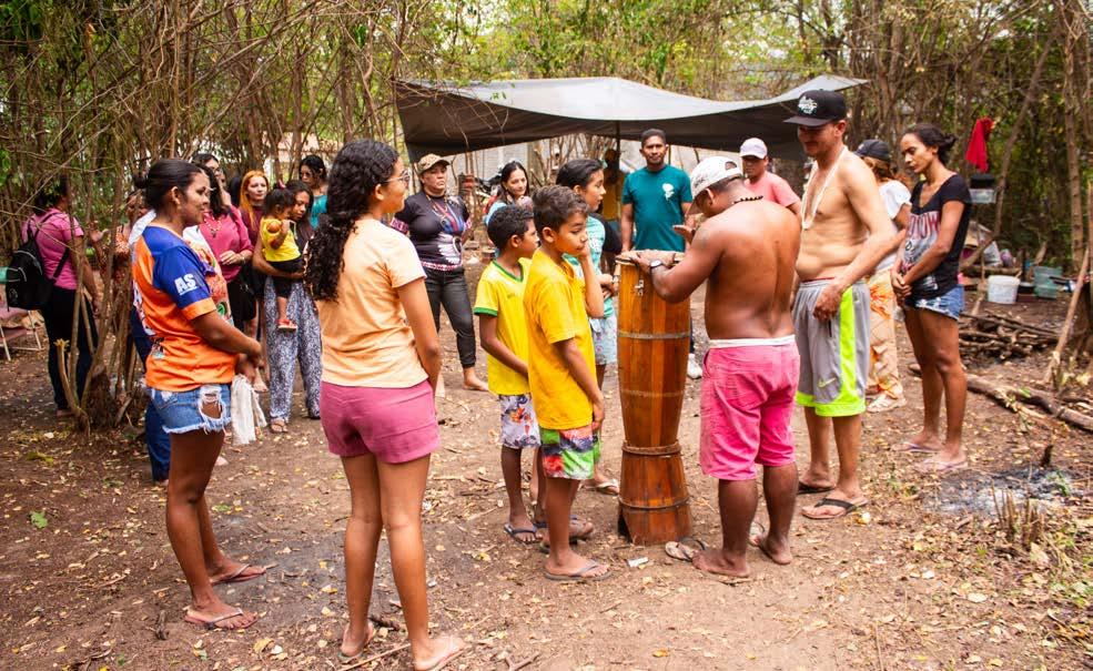 ma oferece ainda uma ajuda de custo para alguns dos alunos vulneráveis financeiramente, possibilitando que eles continuem engajados na iniciativa e consigam arcar com despesas de deslocamento e alimentação. Ao integrar os jovens com novas tecnologias, o Brotar Cinema fortalece a luta indígena. É a partir das formações que eles aprendem a divulgar nas redes sociais o trabalho realizado. É também uma forma de ampliar o alcance do movimento indígena, dando visibilidade às pautas do povo. Hoje, vários alunos que tiveram o primeiro contato com a produção au diovisual no Brotar Cinema expandem sua atuação em outros territórios e passam a integrar o circuito de cinema cearense. Um exemplo é Gleydson Anacé, de 19 anos, que participou da turma de 2023 e teve sua vida trans formada pela escola. Ele atuou como diretor de câmera em dois filmes e hoje tem o desejo de continuar na área e produzir ainda mais obras que abordem a história, a cultura e as vivências do povo Anacé.