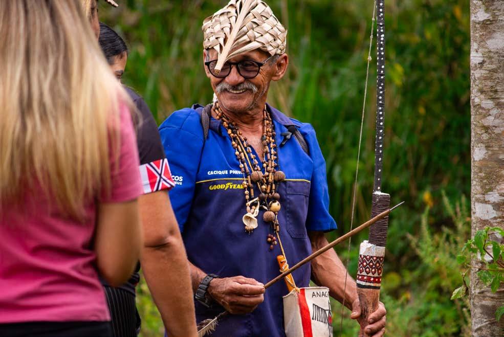O nome “Passarinho” não é em vão. Apaixonado pelas aves, ele reconhece a maioria pelo canto, além de reproduzir suas melodias com precisão. Os sons que entoa poderiam confundir qualquer um. O homem pequeno, de cabelos brancos e olhos apertados, circula a aldeia com chapéu de palha artesanal no formato do bico de um pássaro.