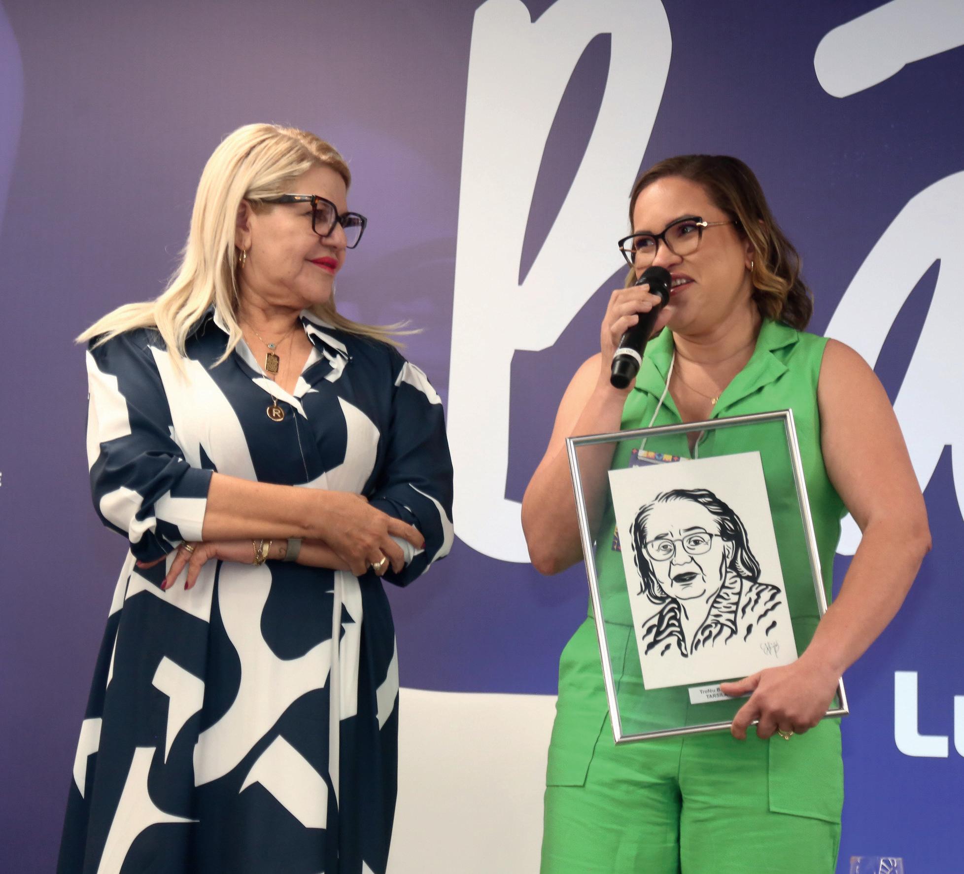 Aos 95 anos, a jornalista Adísia Sá subiu ao palco para receber o quadro em sua homenagem. Formada em Filosofia,