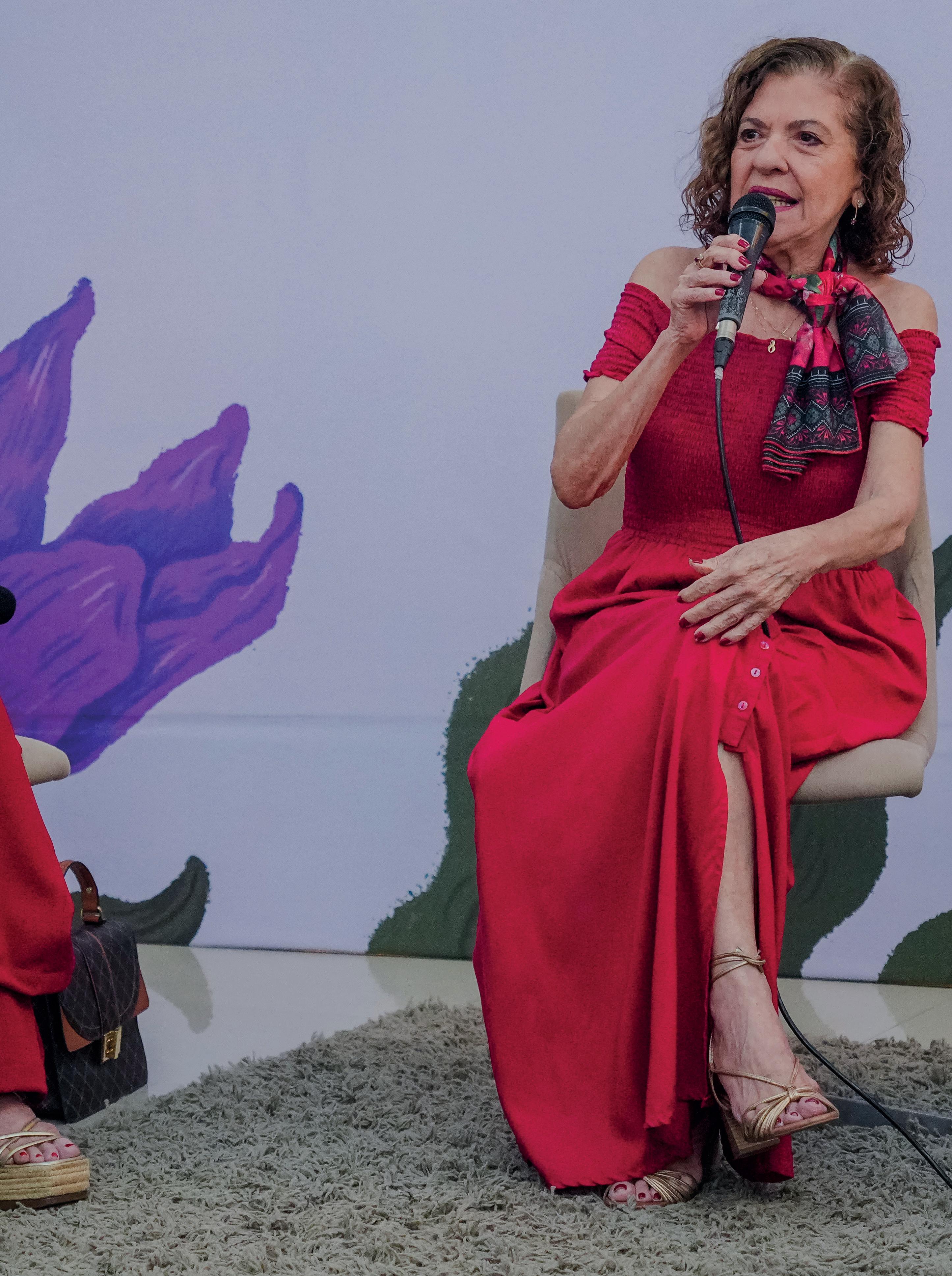 Com muita graça e honestidade, Adísia arrancou risadas da plateia ao agradecer pela homenagem. “Eu ficaria profundamente frustrada, triste e ia chorar no fundo da minha rede se vocês não me dessem essa homenagem. Não vou mentir, eu adoro ser recebida embaixo de palmas”, disse ao subir ao palco.