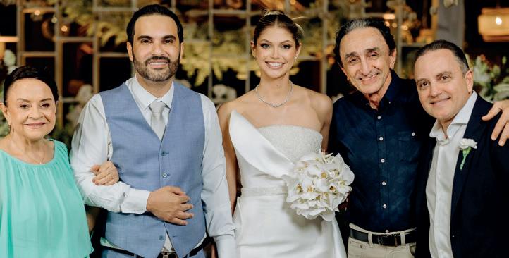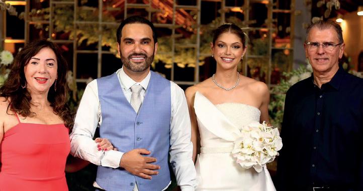 Galerista Victor Perlingeiro em costume claro e ela, a enóloga e empresária Maria Braz, num longo off-white da estilista Marina Bitu, mais uma obra de arte numa tarde já repleta de cores e beleza.