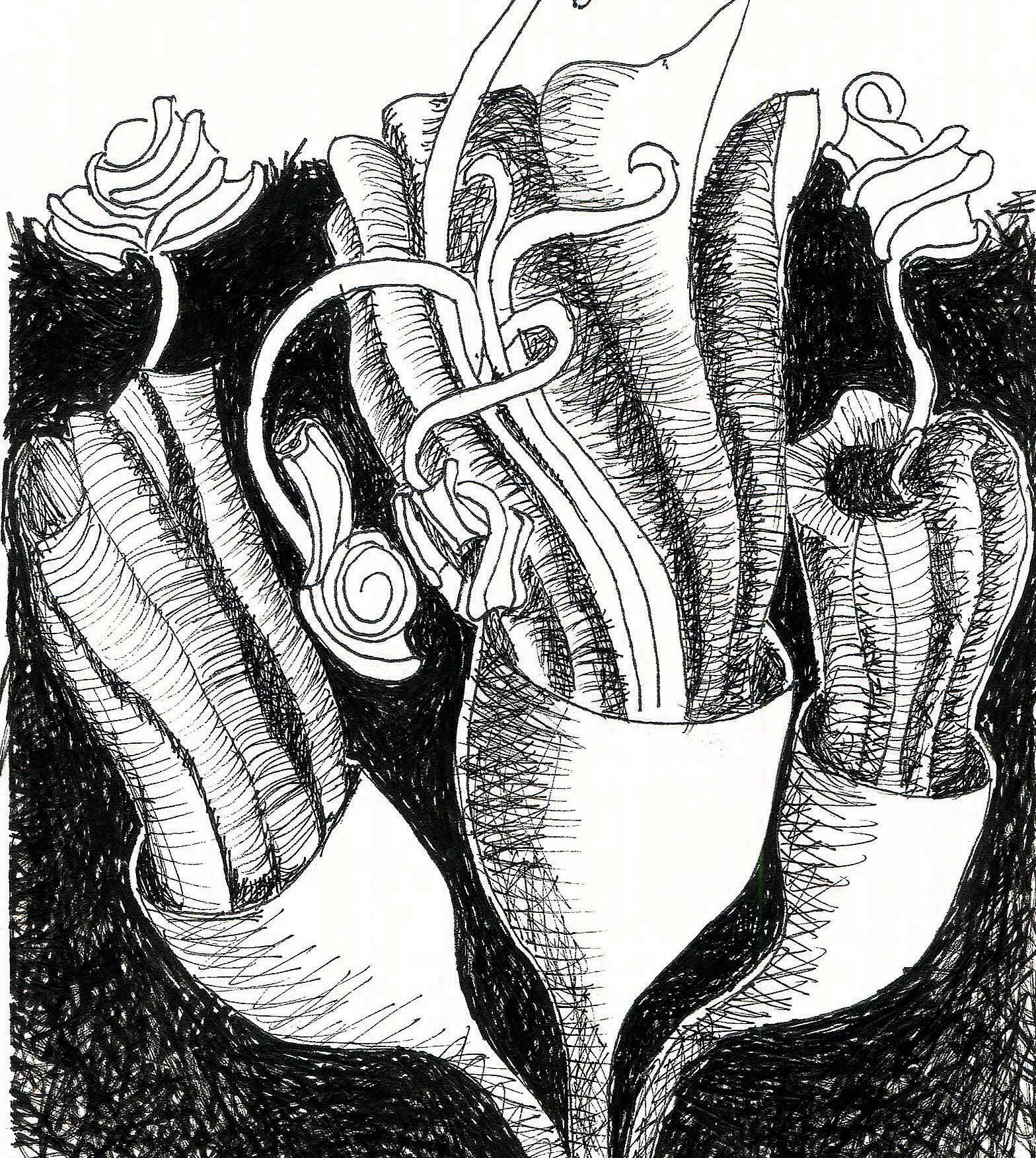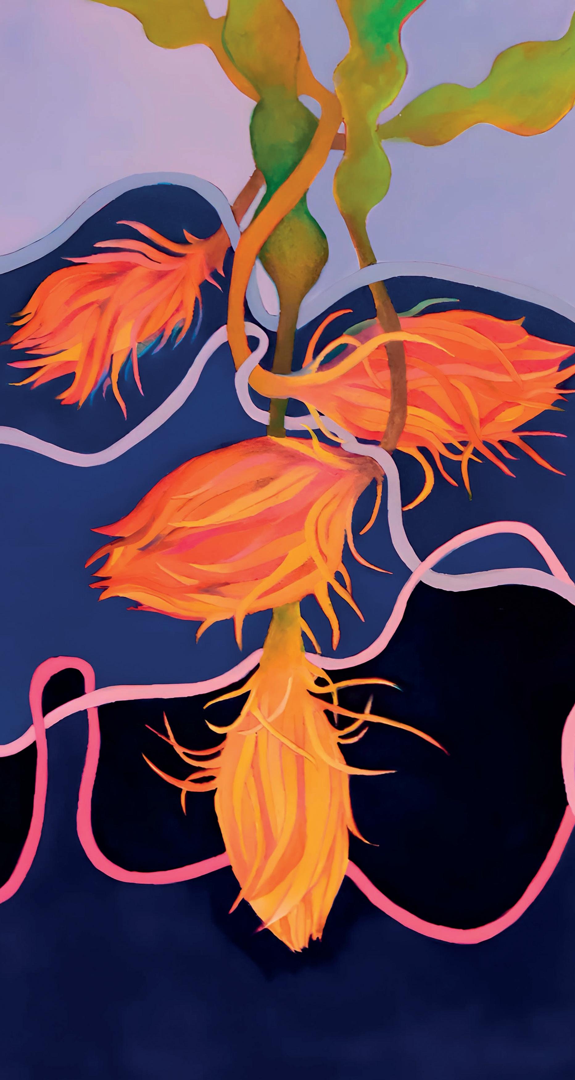Com os olhos sempre atentos à natureza, ele usa a câmera do telefone celular para fotografar e maximizar as estruturas quase microscópicas da flora doméstica e das folhas, flores e frutos que cruzam seu caminho. A partir daí vai estudar cada planta a ser pintada, suas formas, estruturas, funcionamento. Munido disso, faz inúmeros estudos, testes de tamanho, retoque de cores, até chegar em sua concepção, já que, numa licença poética, permite-se trocar cores, recriar. “Matisse pintou a mulher dele com cabelos verdes, também posso fazê-lo”, me diz o artista que, mesmo com 27 páginas de currículo no campo das artes e já tendo experimentado momentos de muita evidência e reconhecimento, como expor na Bienal de São Paulo (1973) e em Paris, na Galeria Neslie, em 1991, vivencia um momento especial de troca com o público.