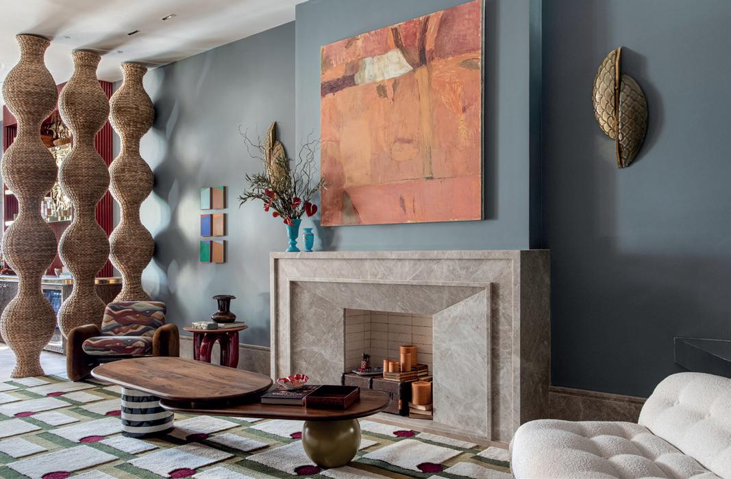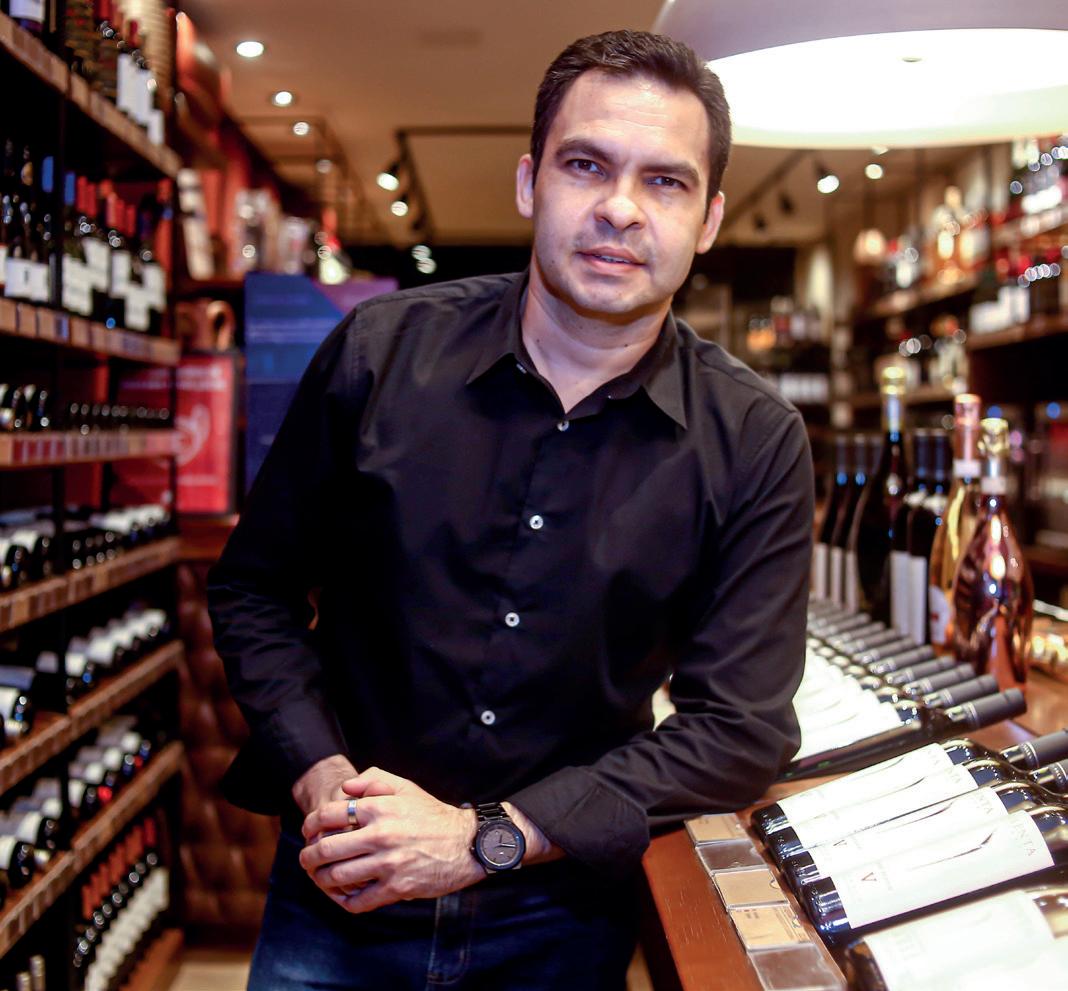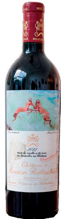 Da adega de casa, onde armazenam rótulos de várias nacionalidades, o icônico Chateau Mouton Rothschild (2012). Acima, atrás do casal, a escultura “As Amigas”, de Bruno Giorgi. À esquerda da foto, a tela “Nu Feminino”, de Eliseu Visconti. Á direita, trabalho do artista Flávio de Carvalho