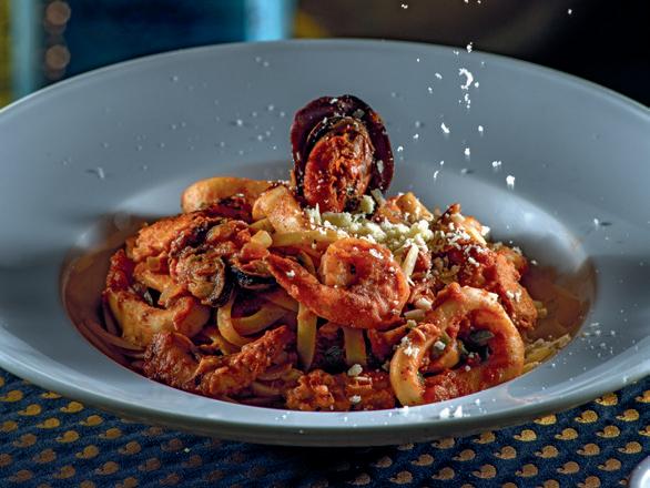 O menu inclui a entrada Tartare di Tonno com filé de atum em cubos, cebola roxa, maçã verde, gelatina de iogurte, finalizado com chips de mandioquinha; e um dos pratos principais mais pedidos, o Spaghetti ai Frutti di Mare, molho à base de bisque e tomate com mix de frutos do mar.