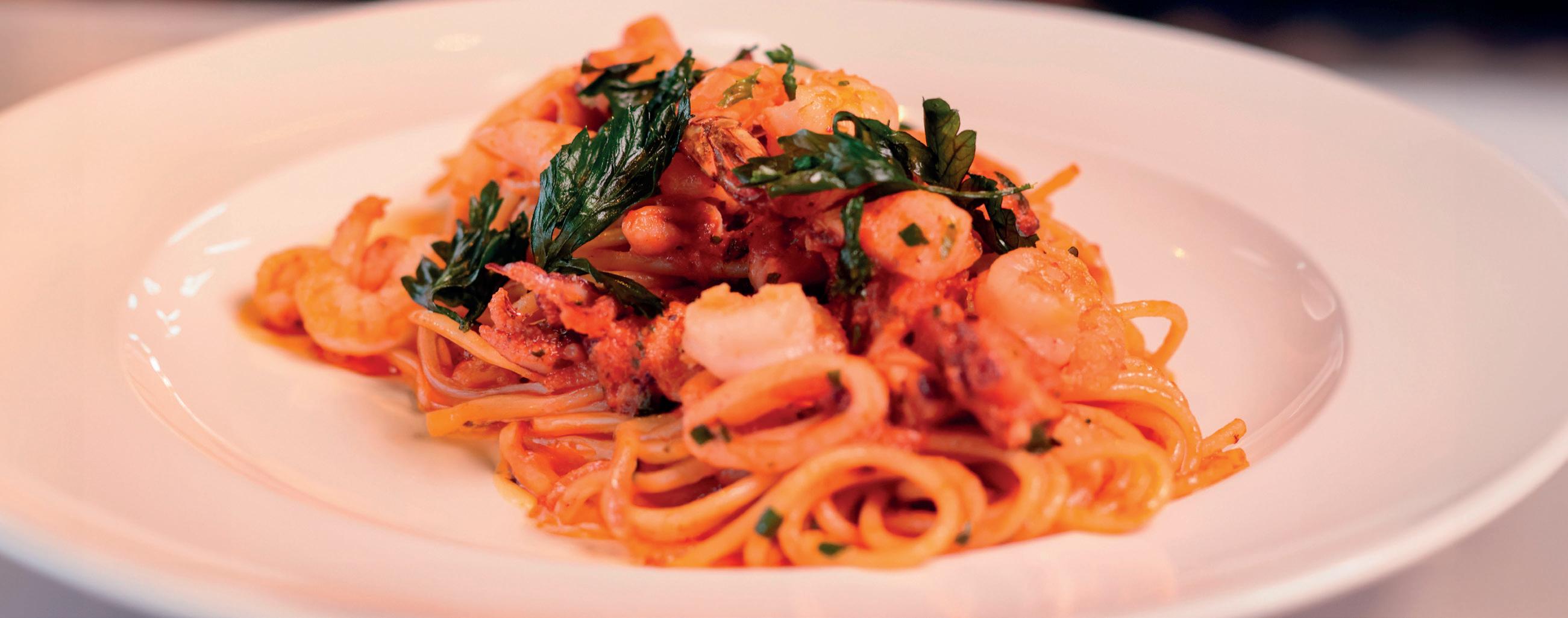 Spaghetti ai Frutti di Mare: molho à base de bisque e tomate com mix de frutos do mar