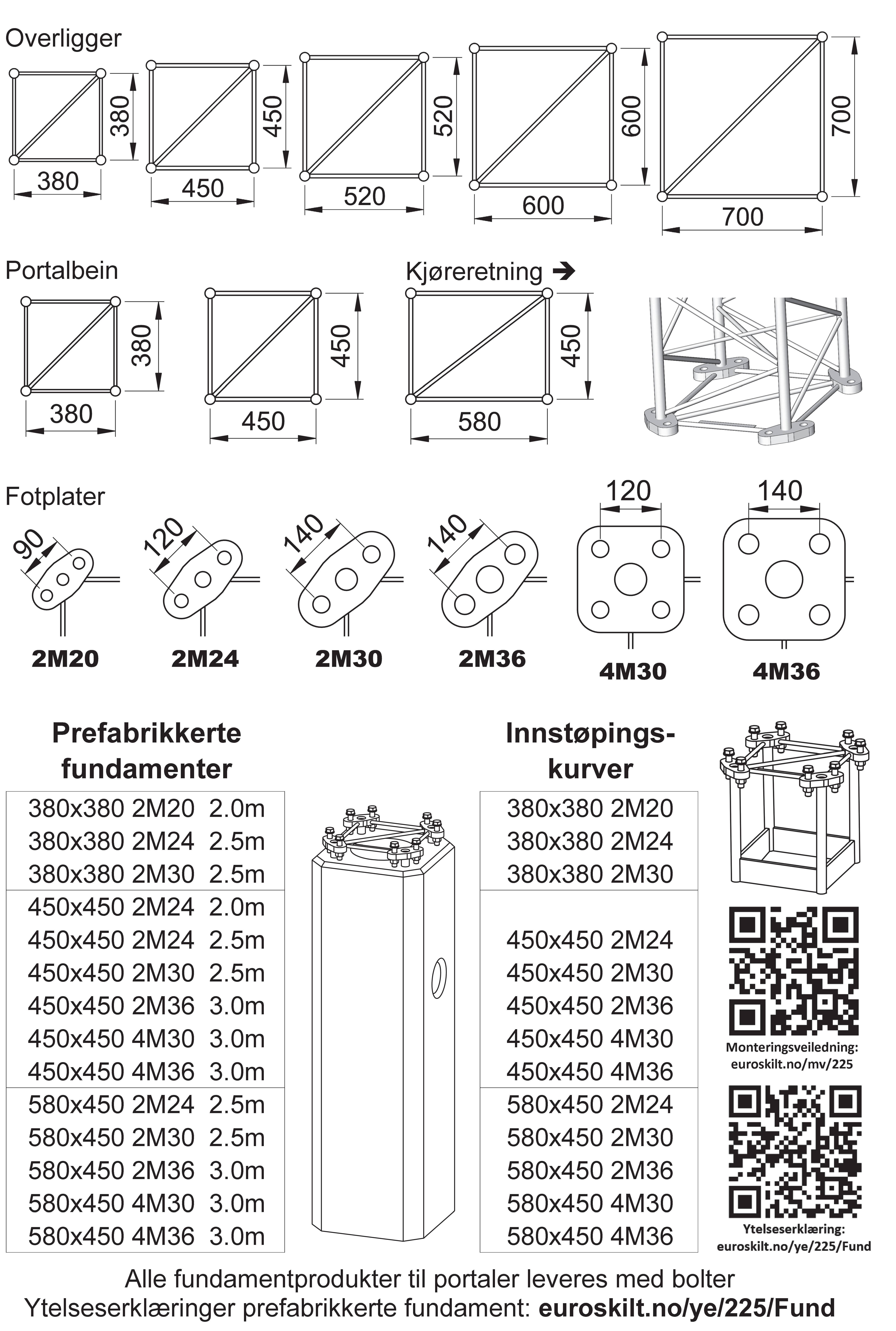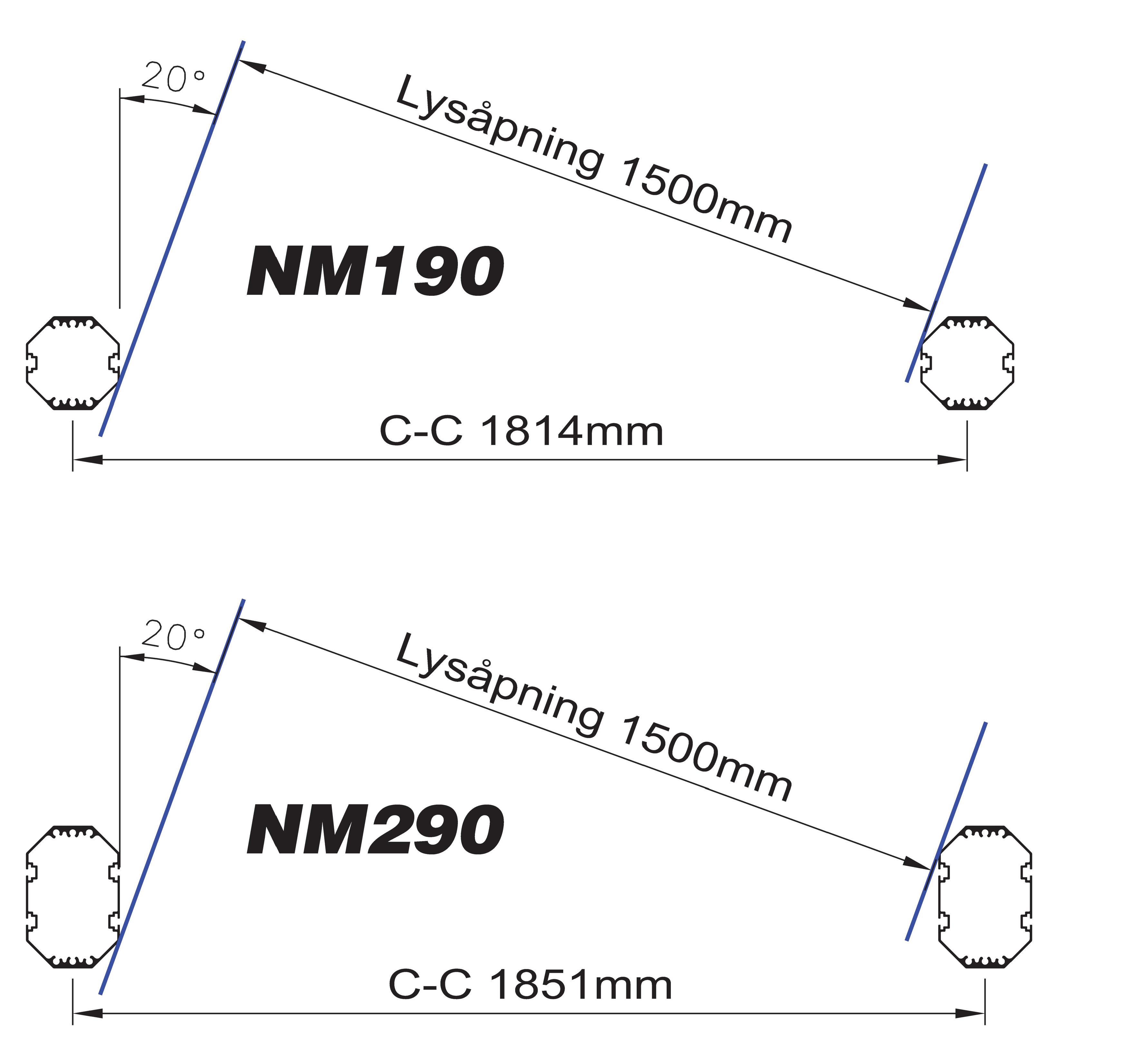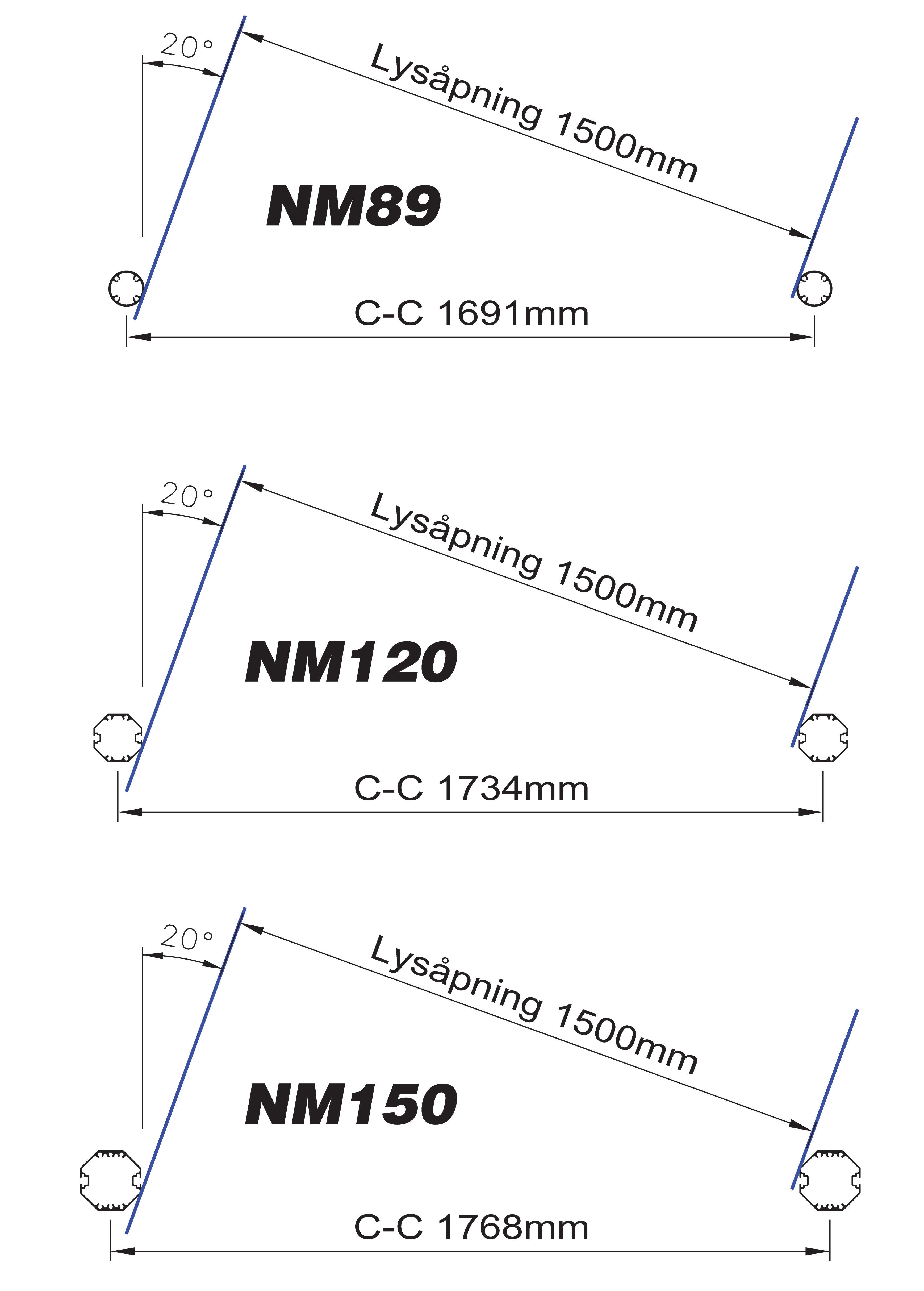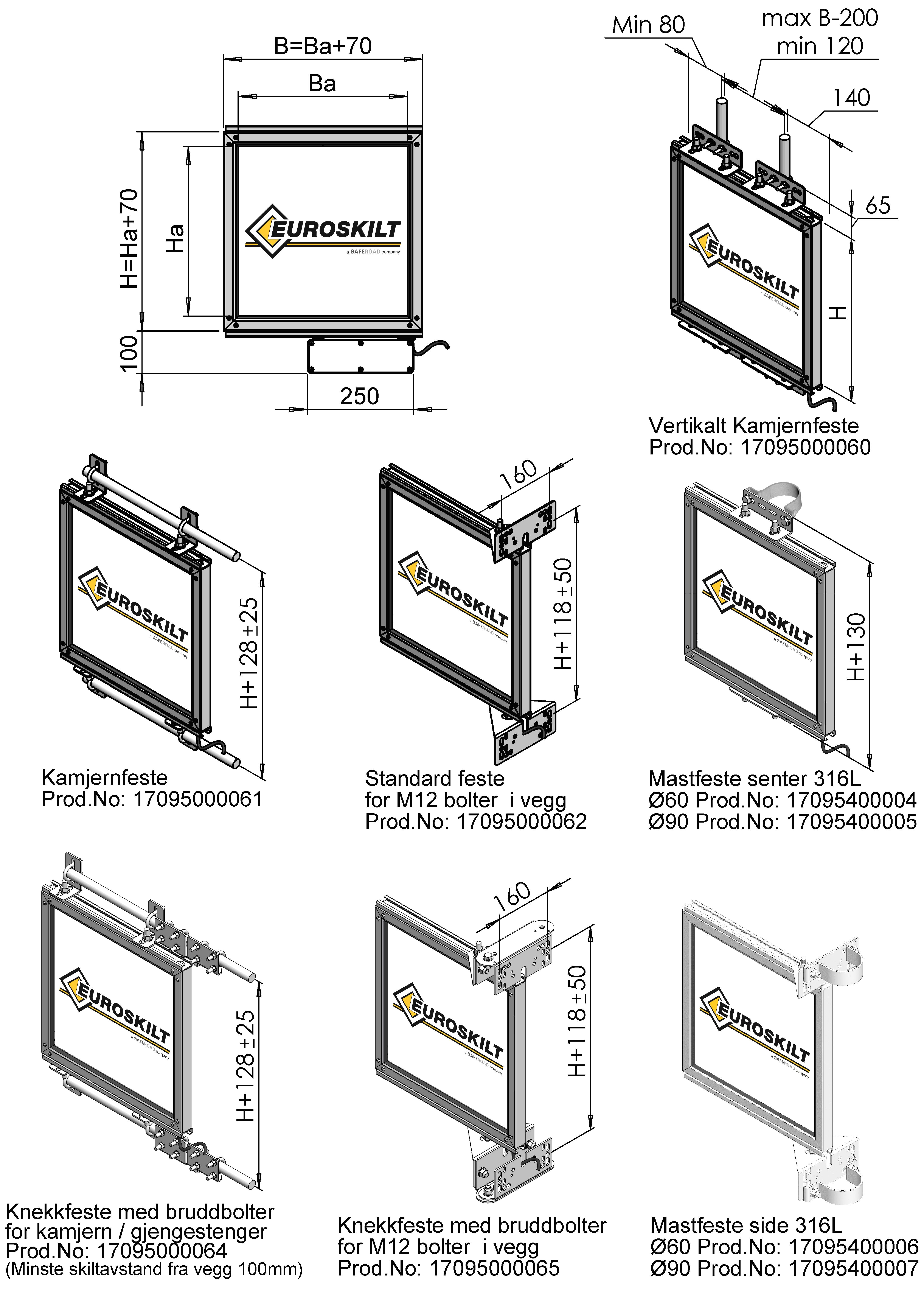 Alle mål er utvendige skiltmål oppgitt uten C-skinne.