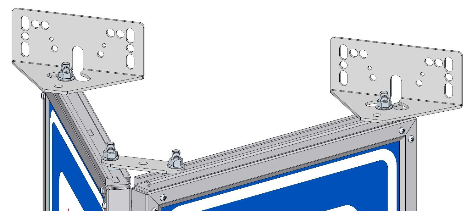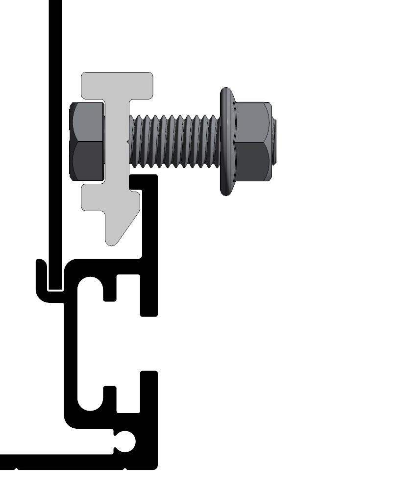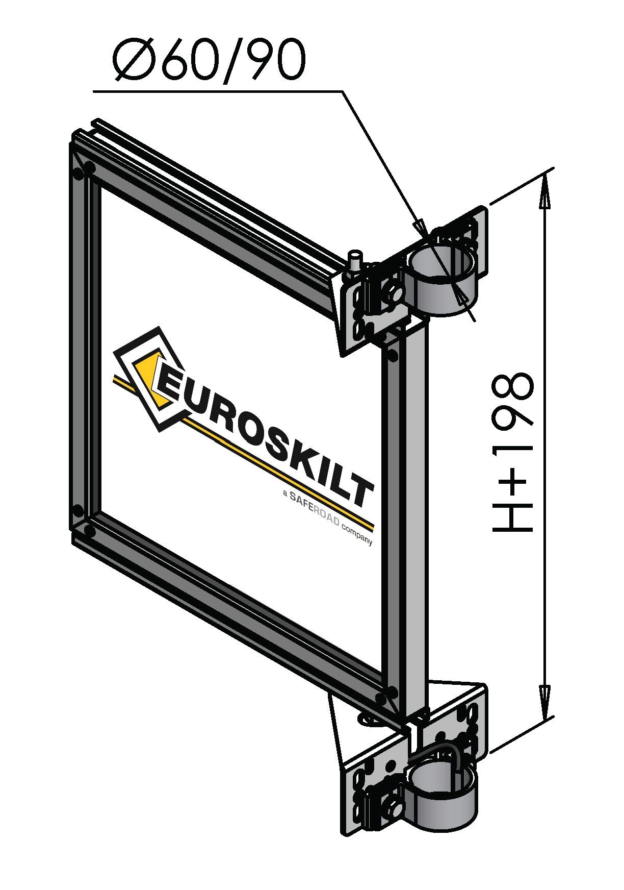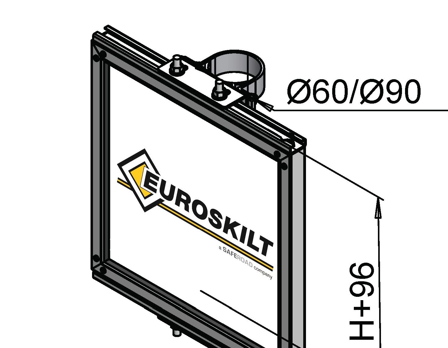 Festeteknologi med C-skinne for M12 firkanthode-bolt i bunn og topp. Alle Euroskilts festetyper kan monteres på alle skilter.