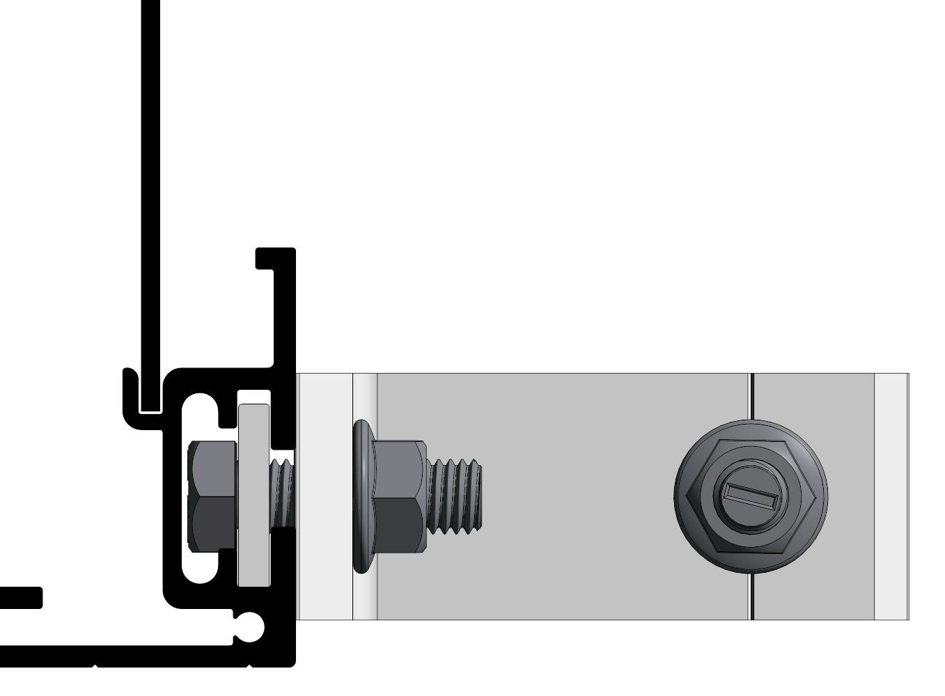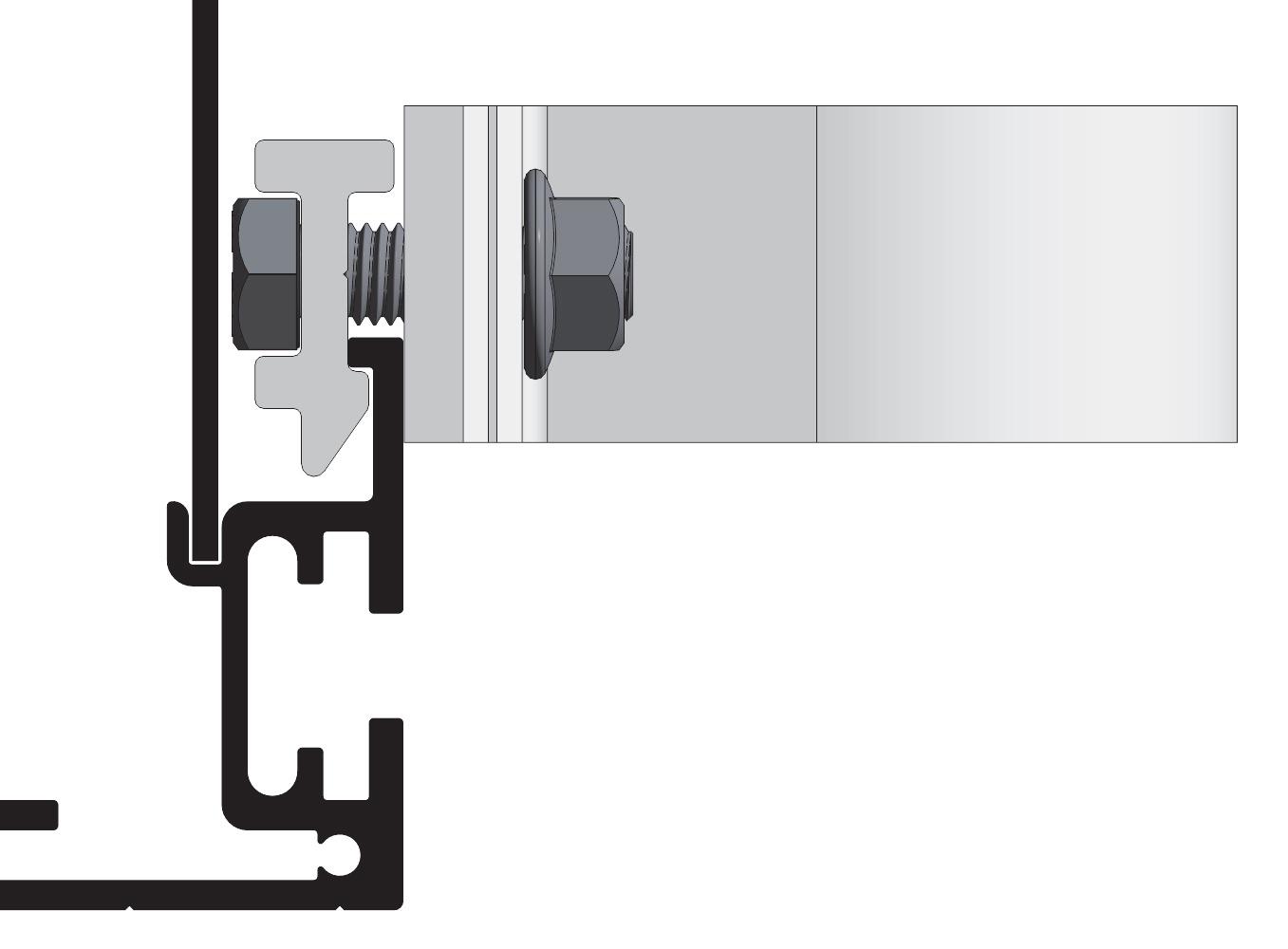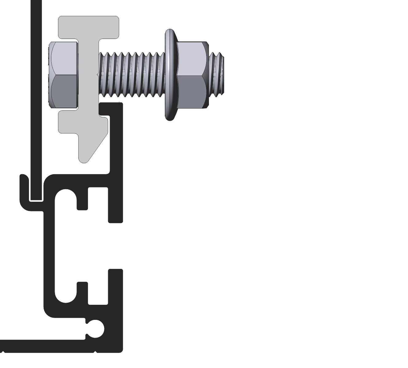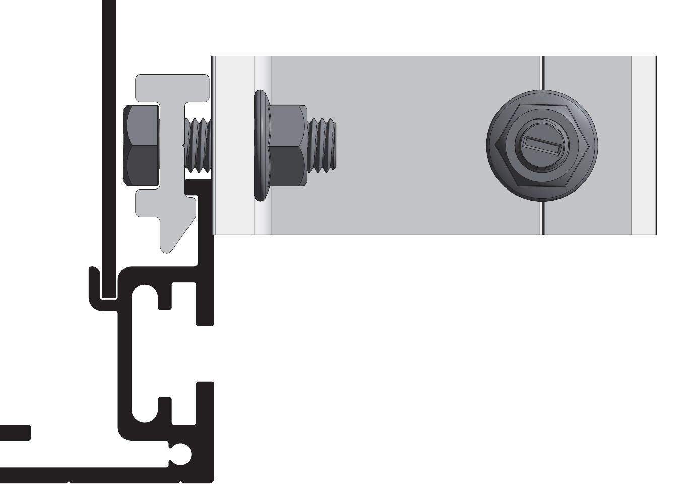 Festeteknologi med C-skinne for M12 firkanthode-bolt i bunn og topp. Alle Euroskilts festetyper kan monteres på alle skilter.