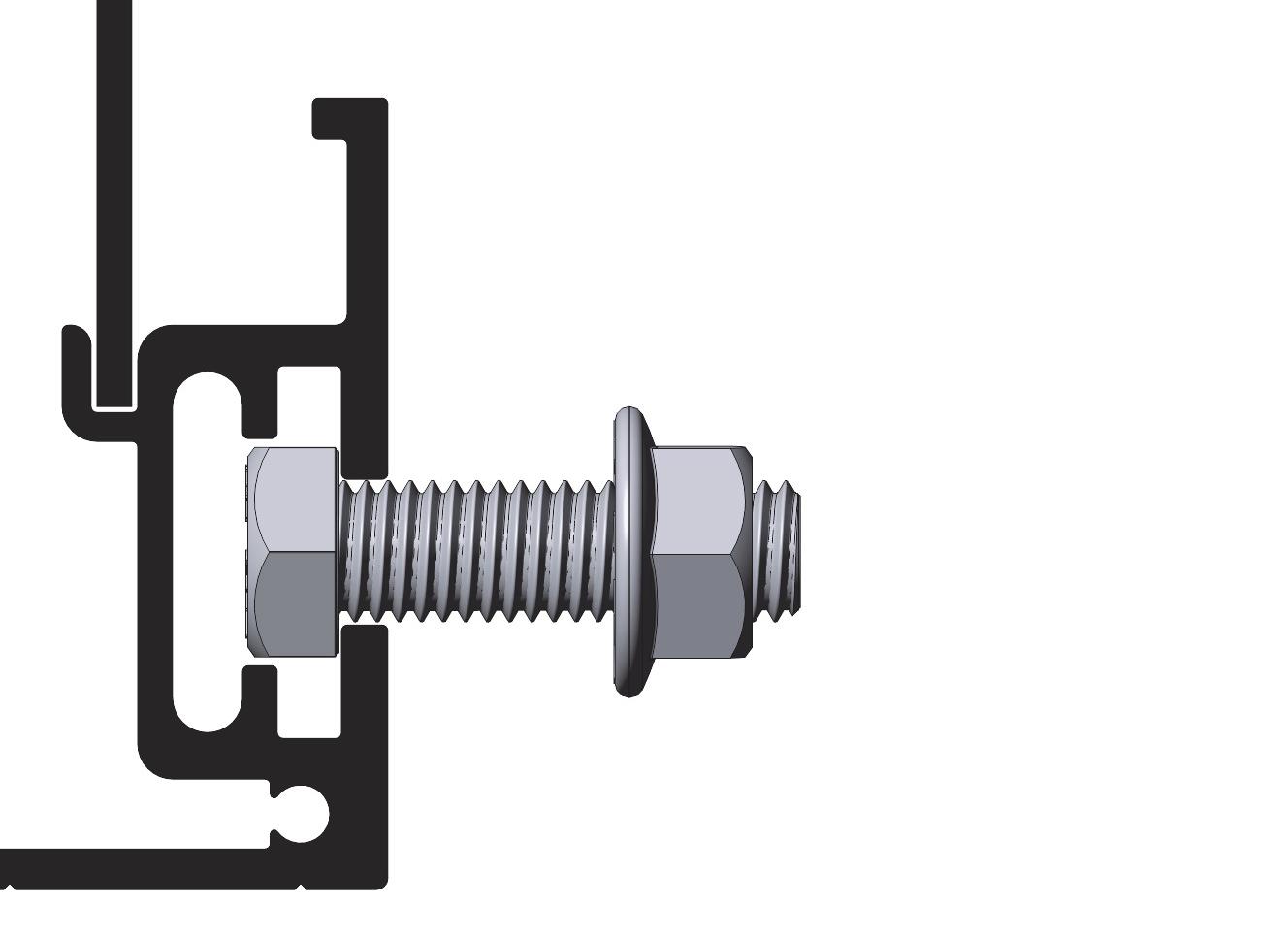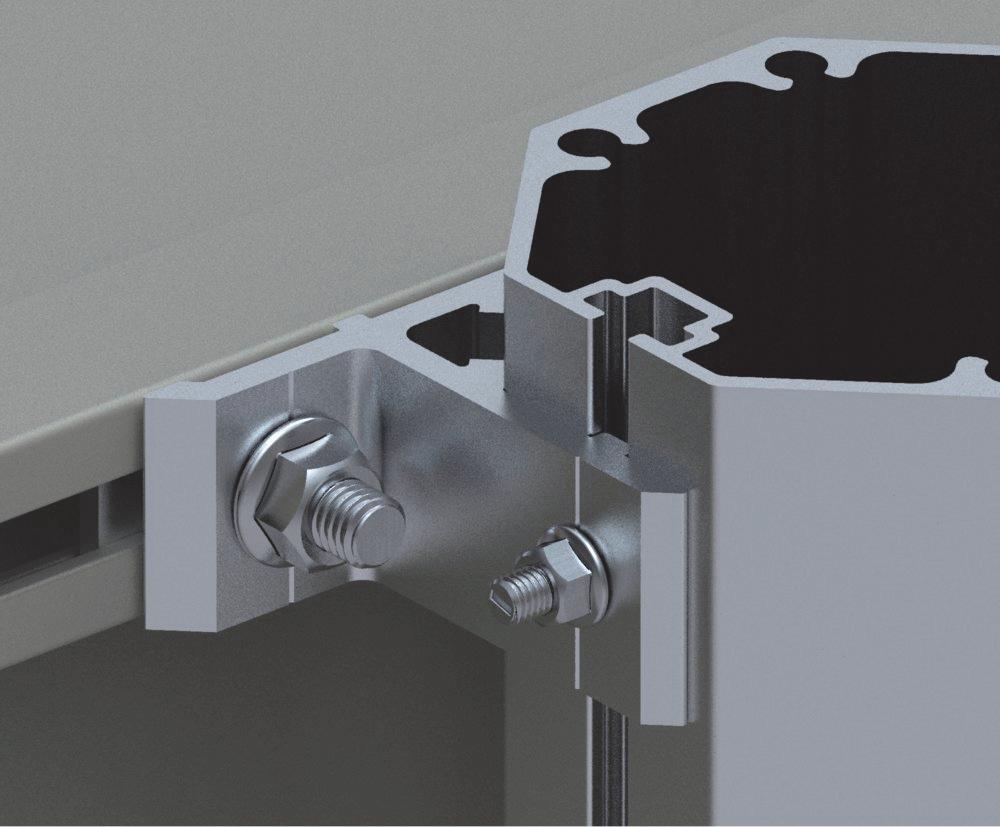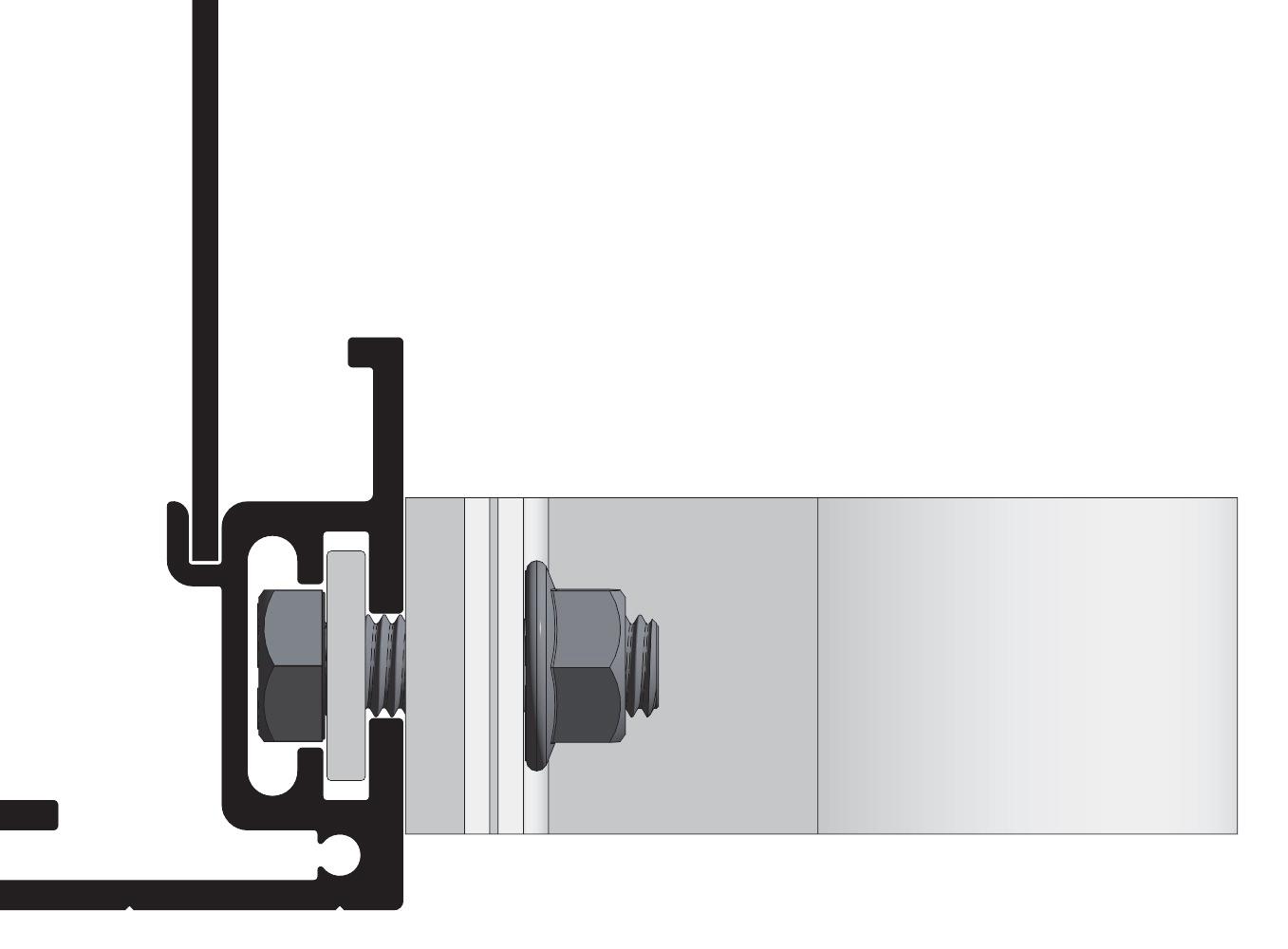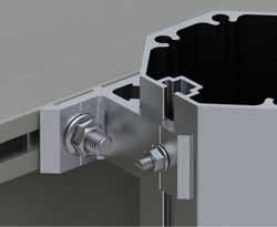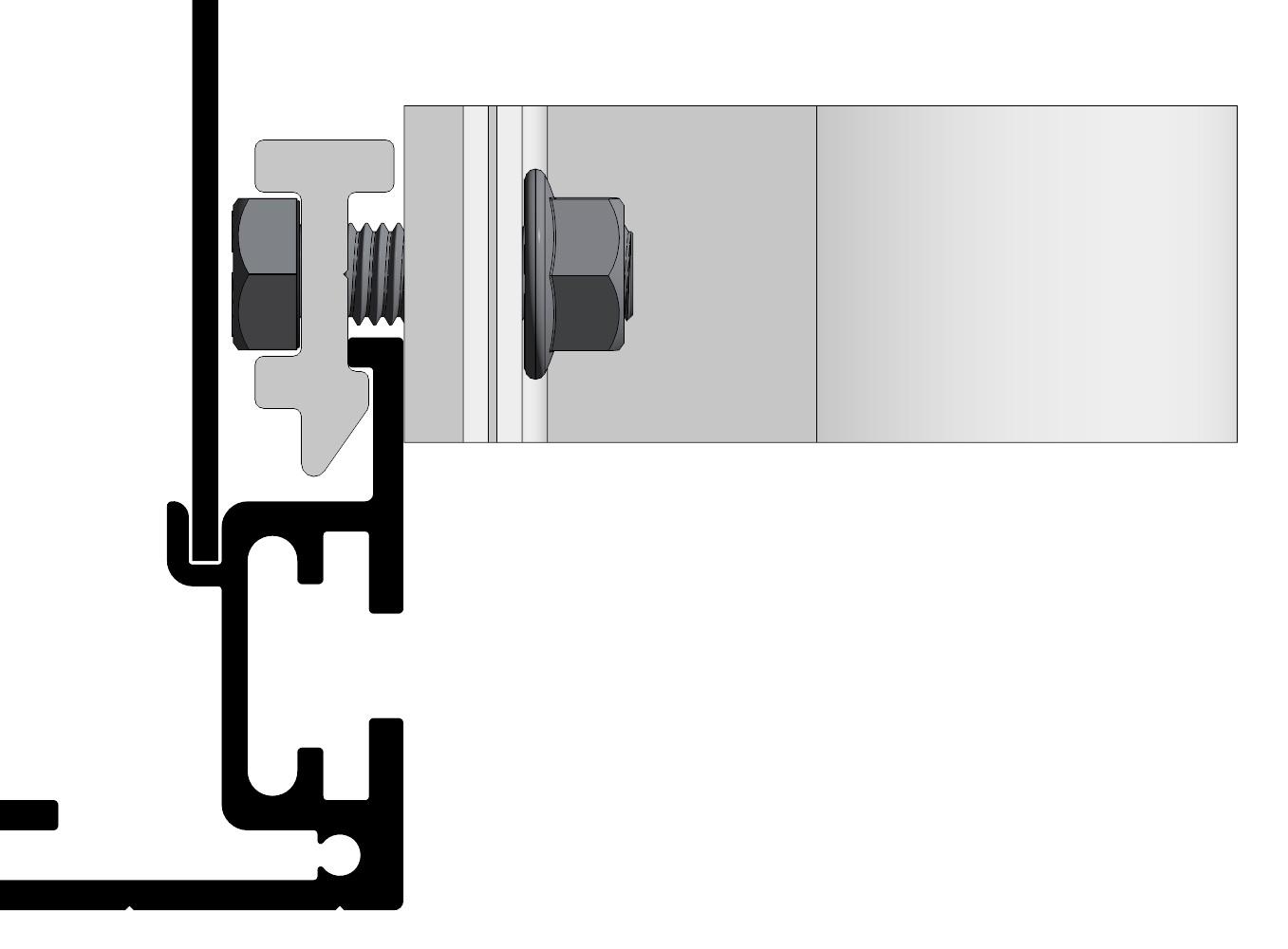 Festeteknologi med C-skinne for M12 firkanthode-bolt i bunn og topp. Alle Euroskilts festetyper kan monteres på alle skilter.