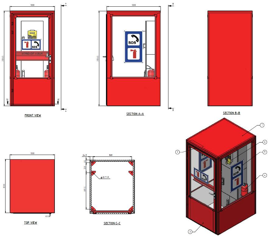 Skapet er utviklet med tanke på å tilfredsstille gjeldene krav samtidig som det bygger minst mulig. Et nødskap av høy kvalitet i syrefast stål 316L. I henhold til SVV Håndbok N500, IP65.