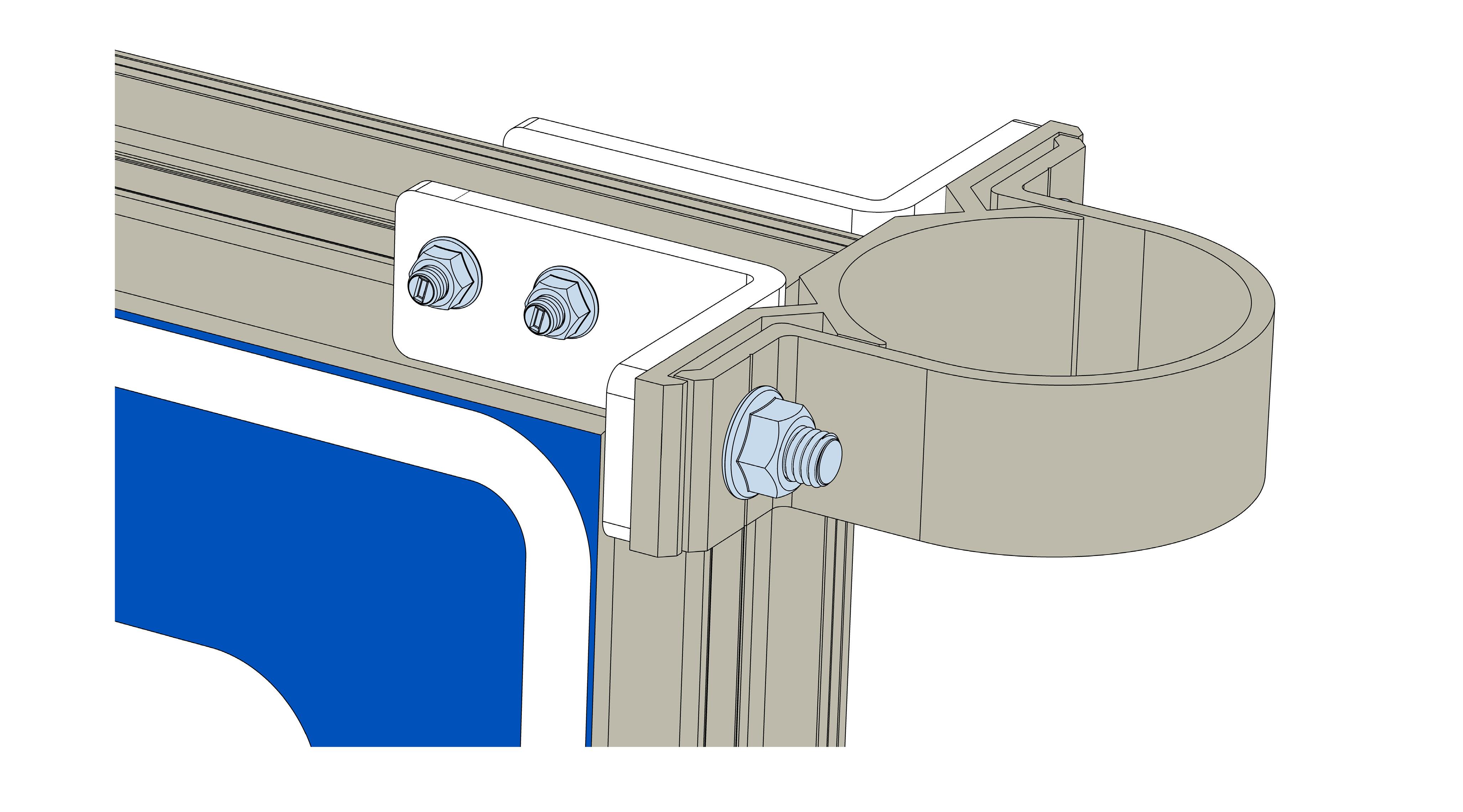 Disse festene leveres samlet som et sett. Settet passer på alle skilt med C-skinne og plogskiltet kan med dette justeres til alle ønskede vinkler opp til 120°. Driverboks monteres på innsiden av plogskiltet med medfølgende fester.
