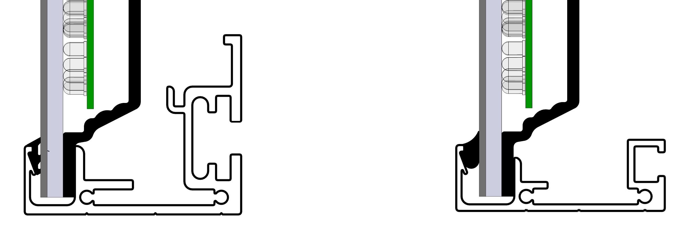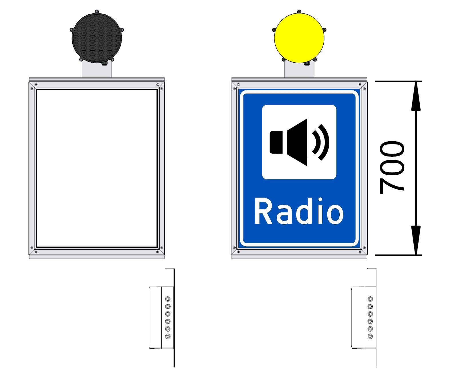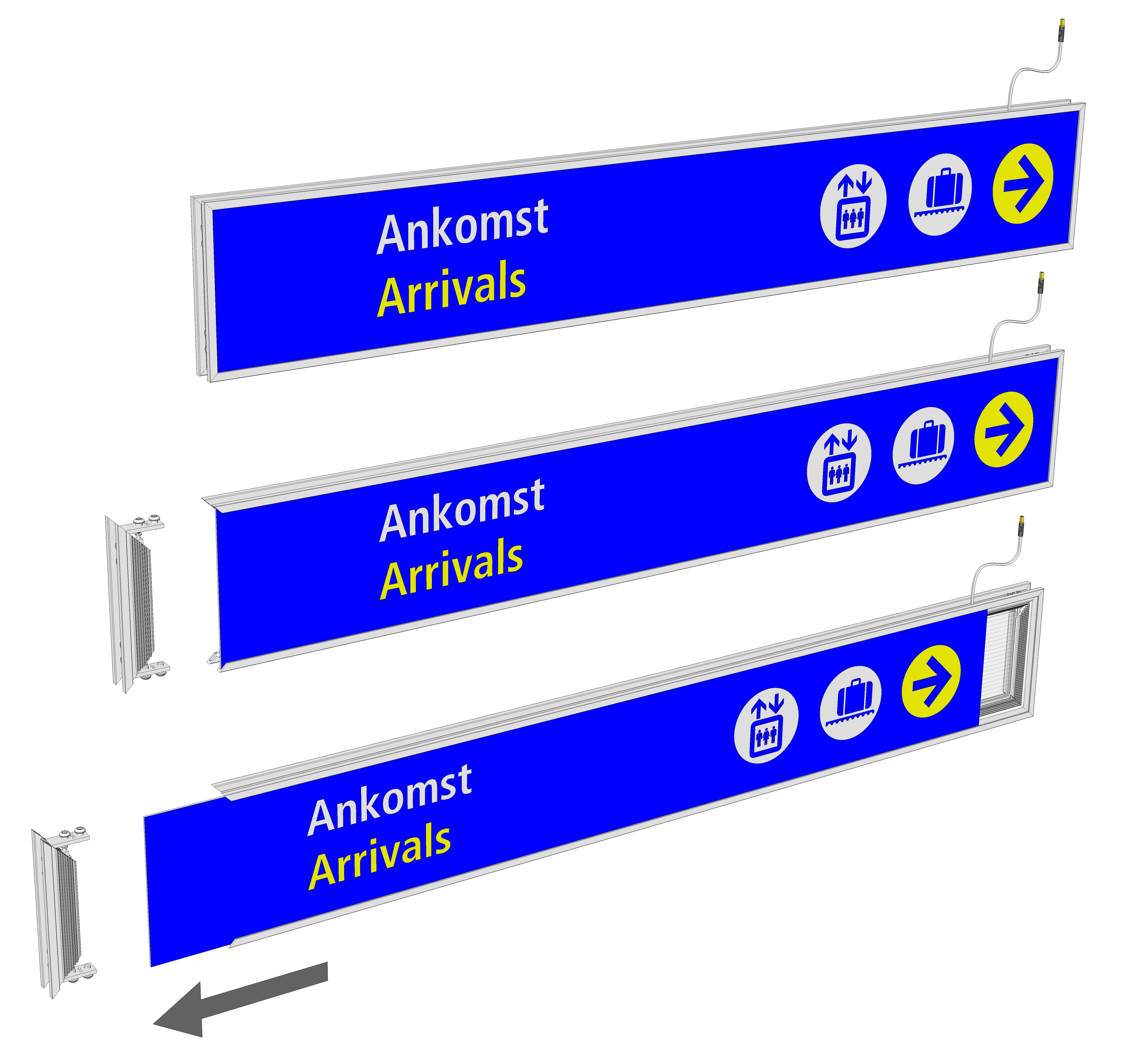 Skiltets lyskilde sitter i profilen og er skjermet mot ytre påvirkninger. Diodene er plassert i skiltets sider. Antall dioder (LED) varierer etter størrelse på skilt.