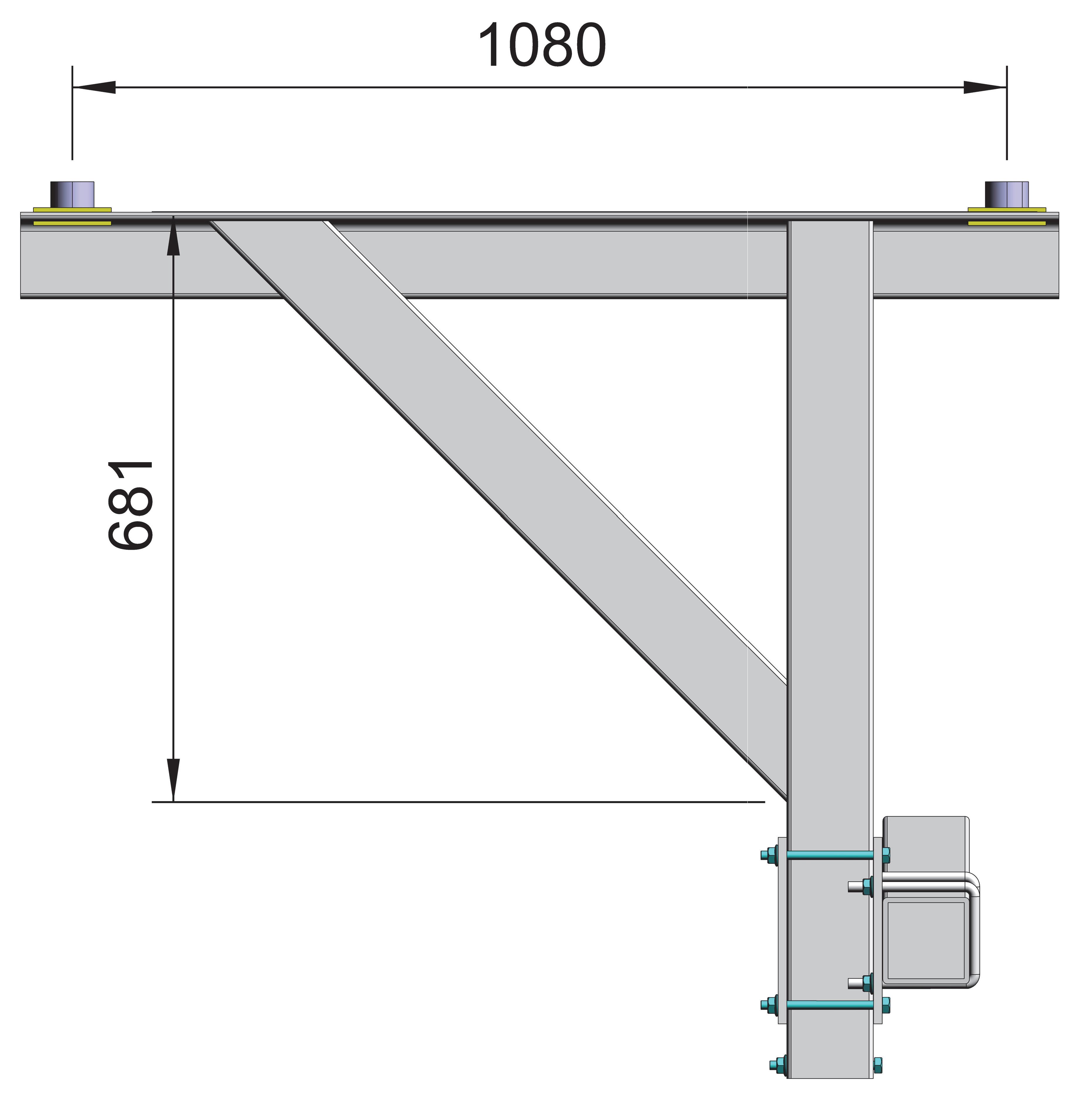 C-C Kamjern: 598mm, C-C M12 bolt: 588mm