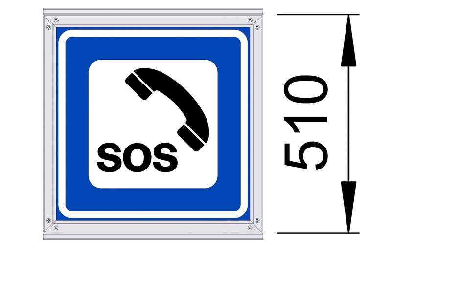 Størrelse: 510 x 510mm, Skiltansikt: 440 x 440mm