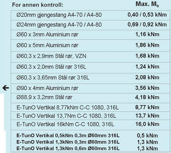 Tiltrekningsmoment for A4-80 mutrer til Norsafe Mast aluminium fotplater: