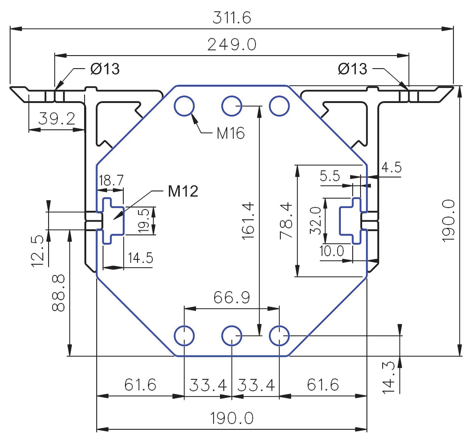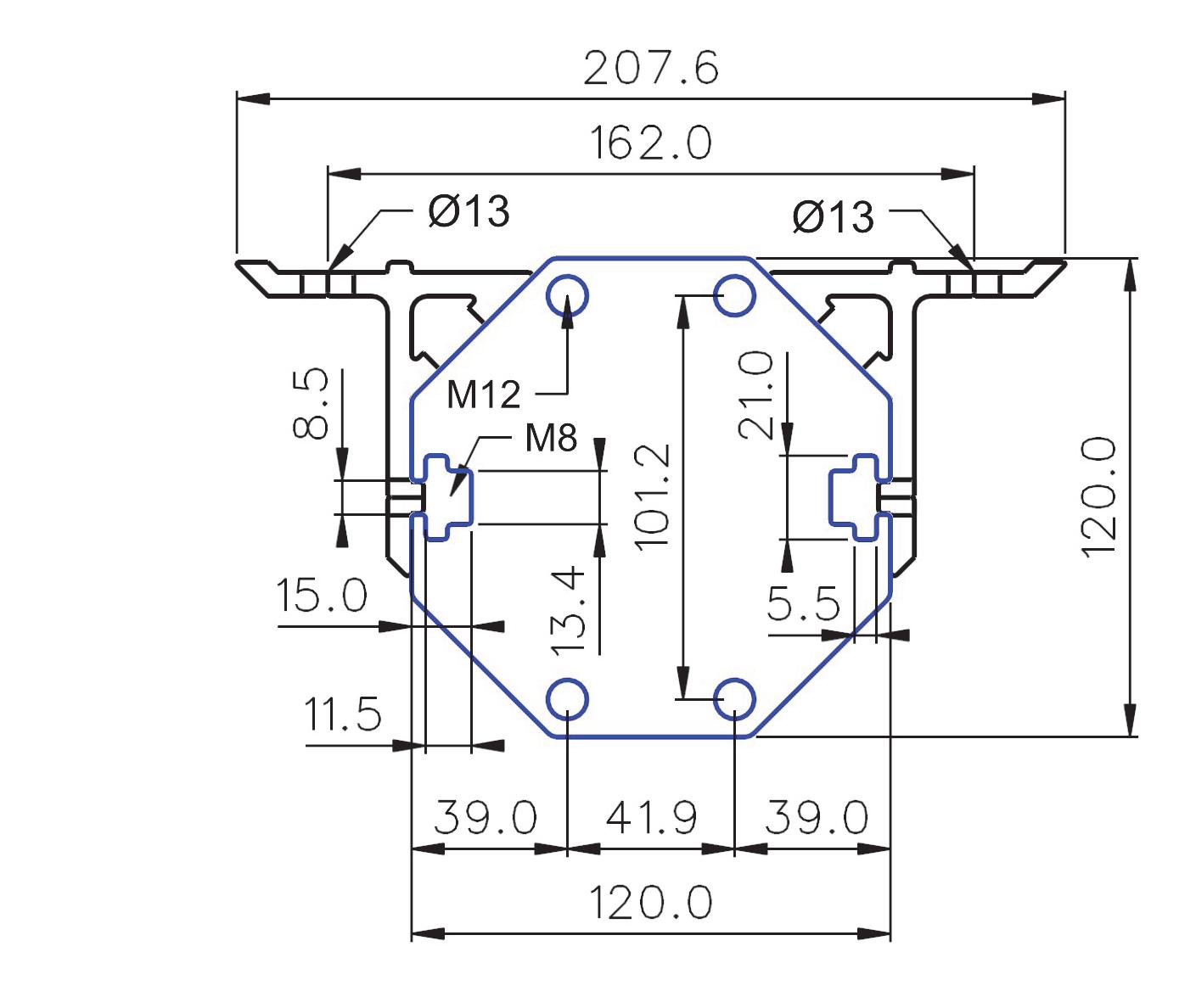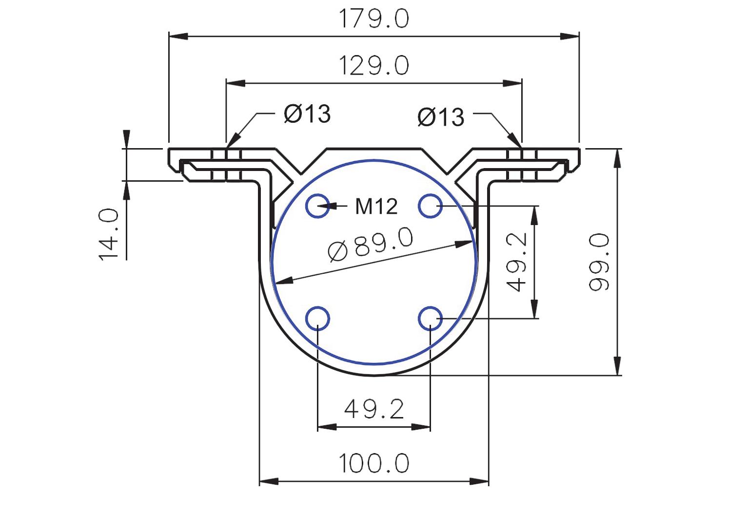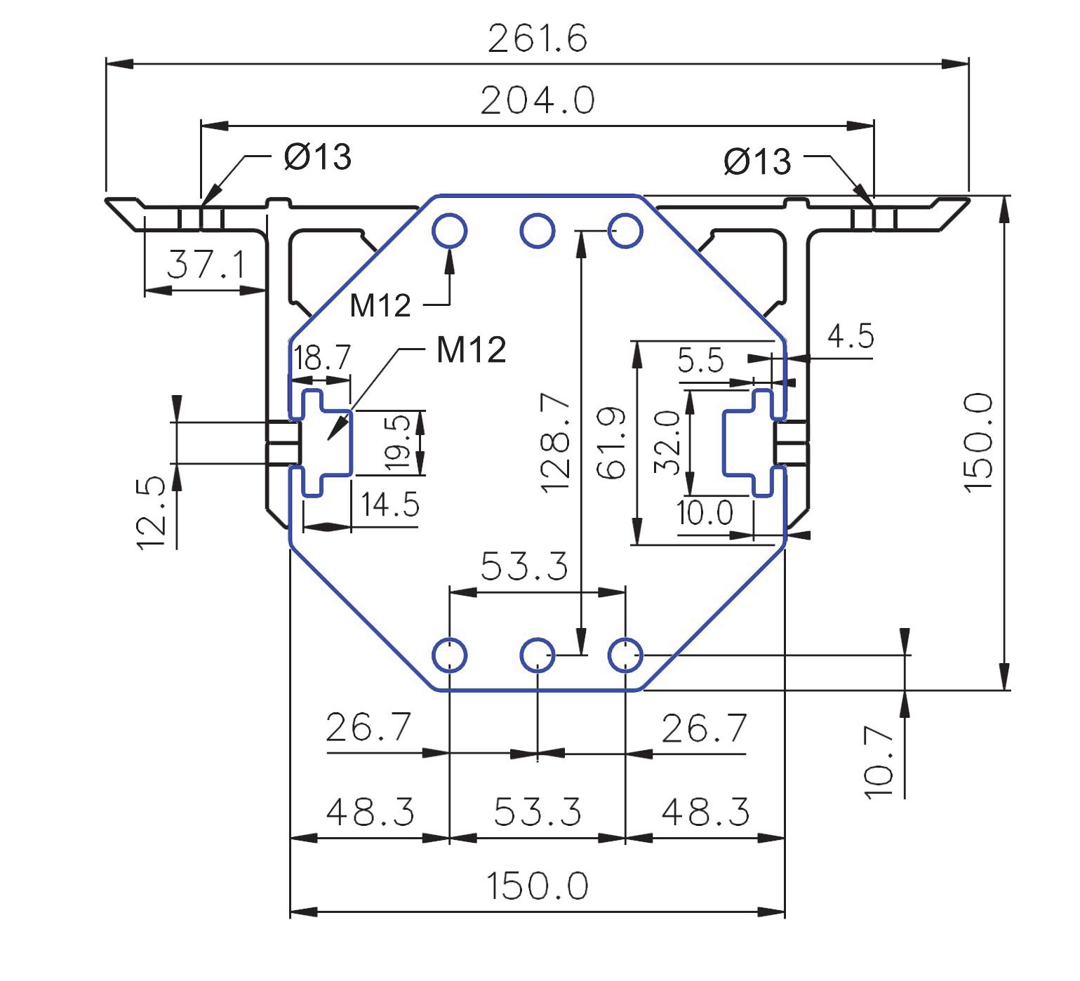 C-C Kamjern: 638mm, C-C M12 bolt: 628mm