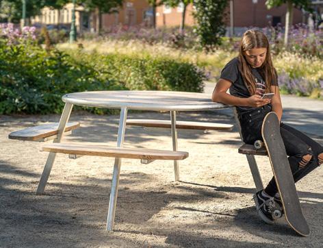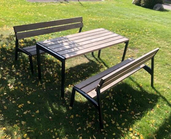 Bestående av benker, bord, avfallsbeholdere, sykkelstativ og sykkeloverdekninger