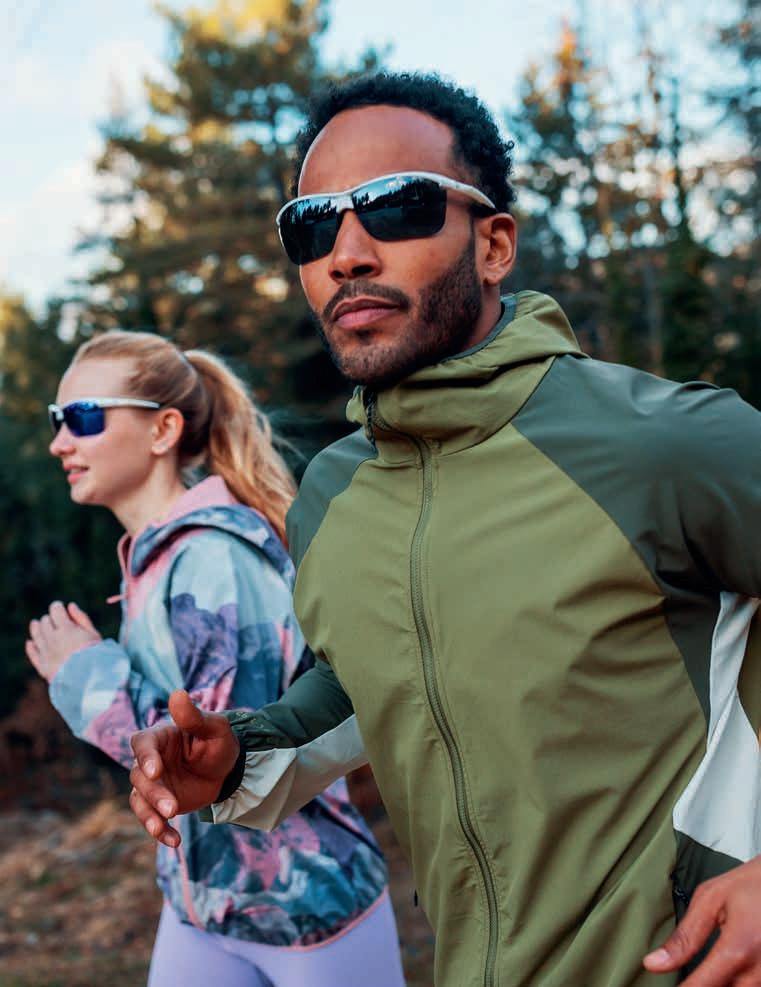 • Sportsbrillens kurvede design gør, at den udelukker UV-strålingen bedre end almindelige solbriller.