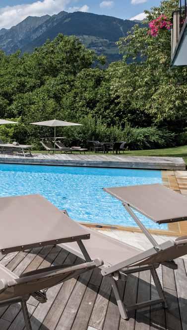 • Piscina al coperto (29°C) con vista verso Castel Scena, zona relax con letti ad acqua e accesso al giardino Feng-Shui.