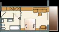 34 m 2 DZ mit Bad und Dusche, Bidet, WC, Haarfön, Schreibtisch, Zimmersafe, Sat-Tv, Balkon, Südseite