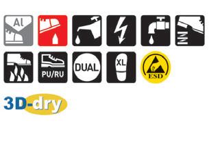 Skorna som försetts med den här symbolen är metallfria. Skorna är lätta och metalldetektorer reagerar inte på dem. DUAL-inläggssula Inläggssulan Sievi DUAL Comfort hjälper Dina fötter och Din rygg att bättre orka med dagen. De stötdämpande dynorna i sulan är av PORON®-material.