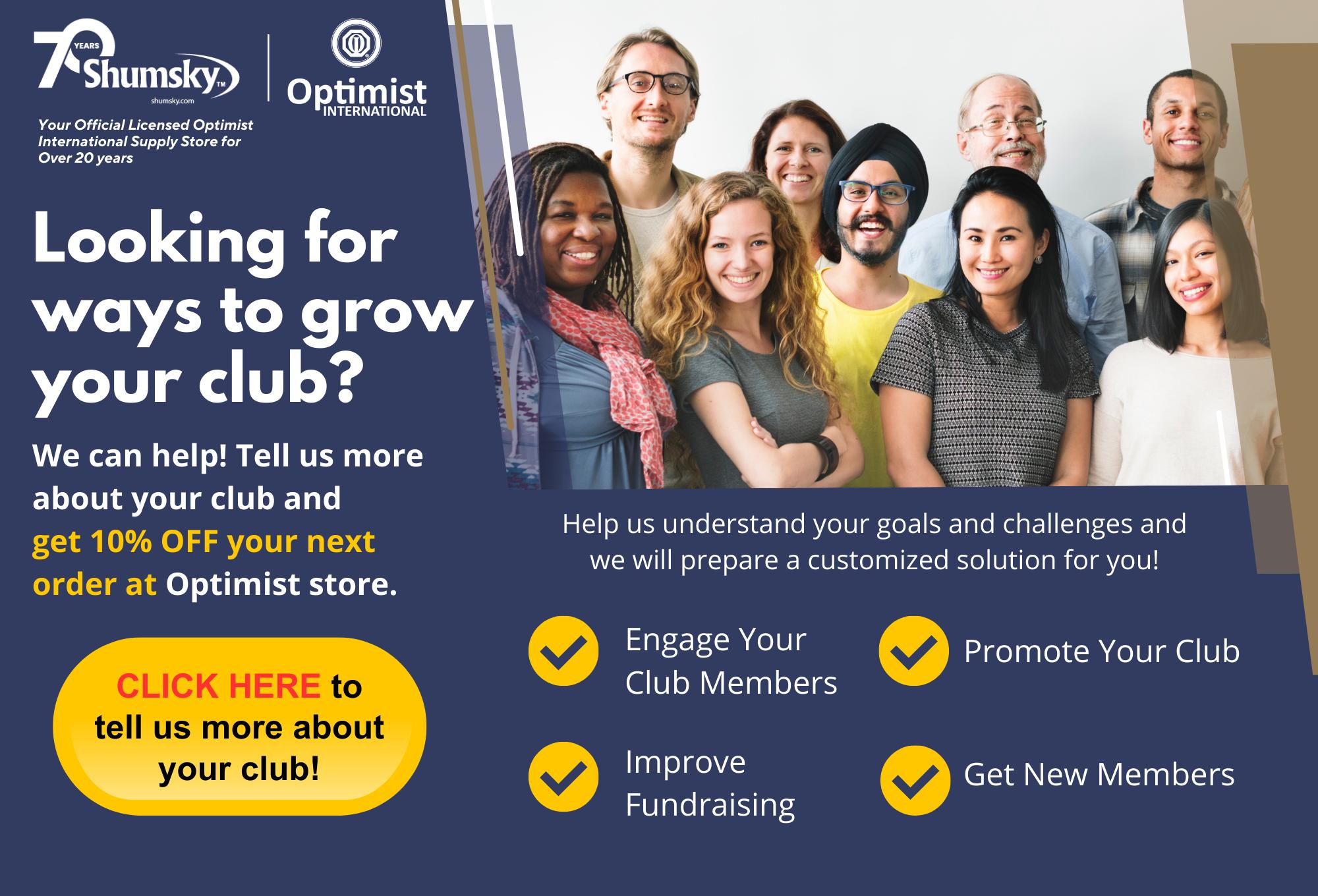 If we fail to bring new people into our organization, then we won’t have an organization, because we are an organization of people. If we don’t put continuous effort into growth, and work through our struggles, we won’t be able to continue the projects and programs our communities have come to rely on. When we lose Members and Clubs, it’s not just a loss to Optimist, it’s a loss to young people and communities all across the world.
