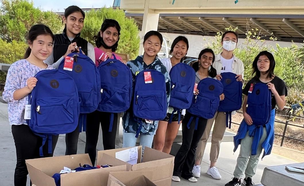 A group of Pacific Trails Middle School Junior Optimists, led by Member Ava Khossravi, recently embarked on an ambitious project to obtain 100 new backpacks and fill them with school supplies to be donated to the Monarch School in San Diego. Assisting with the project was Ms. Elizabeth Sweetman, Campus Director of the Carmel Valley unit of the Art of Problem Solving (AoPS) Academy whose guidance and support enabled this project to be successfully completed. The Pacific Trails Middle School Junior Optimist Club is sponsored by the Del Mar – Solana Beach Optimist Club.