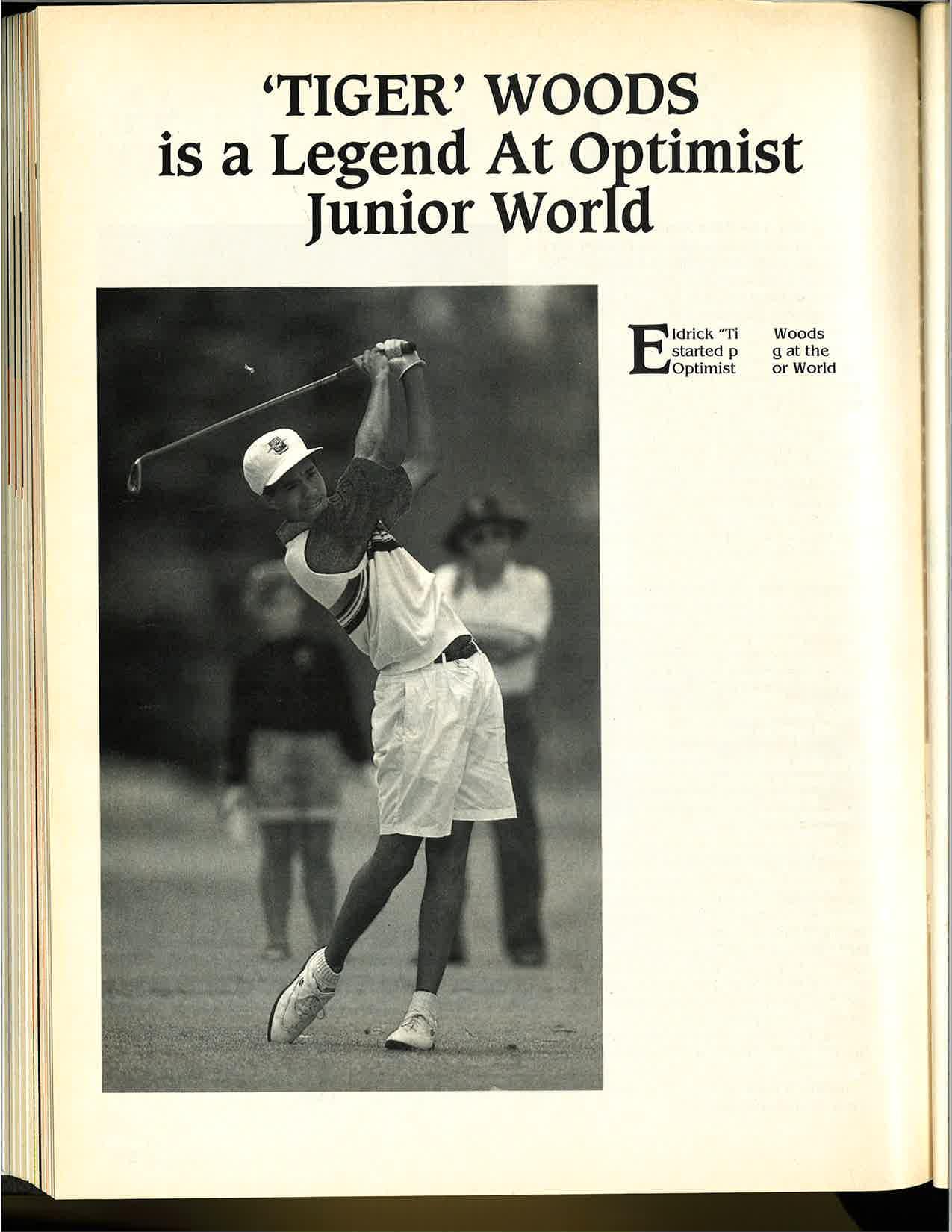 Mark Owings Shriver IV, 1949- 2021ldrick “Tiger” Woods started playing at the Optimist Junior World in 1982 when he was just 6 years old. Since then, the 15-year-old from Cypress, California has built quite a record. Now considered the top U.S. junior golfer, he has been featured