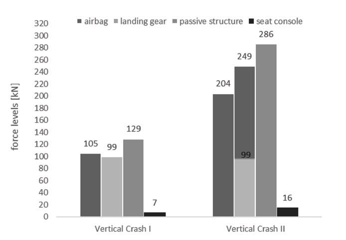 Figure 5. Force levels for energy absorbing systems after analytical design - vertical crash 1 & 2