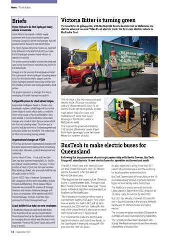Coach builder Irizar takes on new employees A leadership change at coach-body distributor Irizar Australia will see ex-Iveco bus employee Steve Heanes head up the Spanish manufacturer as managing director which was effective in early September. Previous MD Daniel Castro has joined Irizar in the US. 14 | September 2021