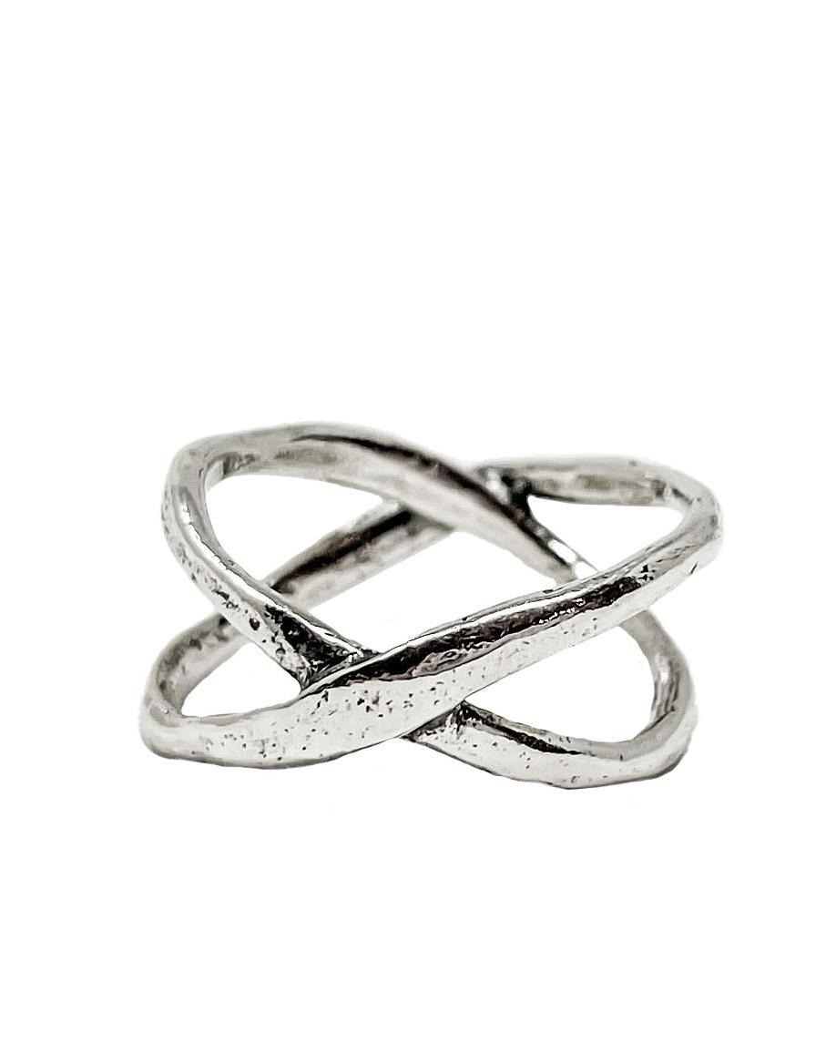 R1077 - Sterling Silver & Oval CZ Braided Band Ring