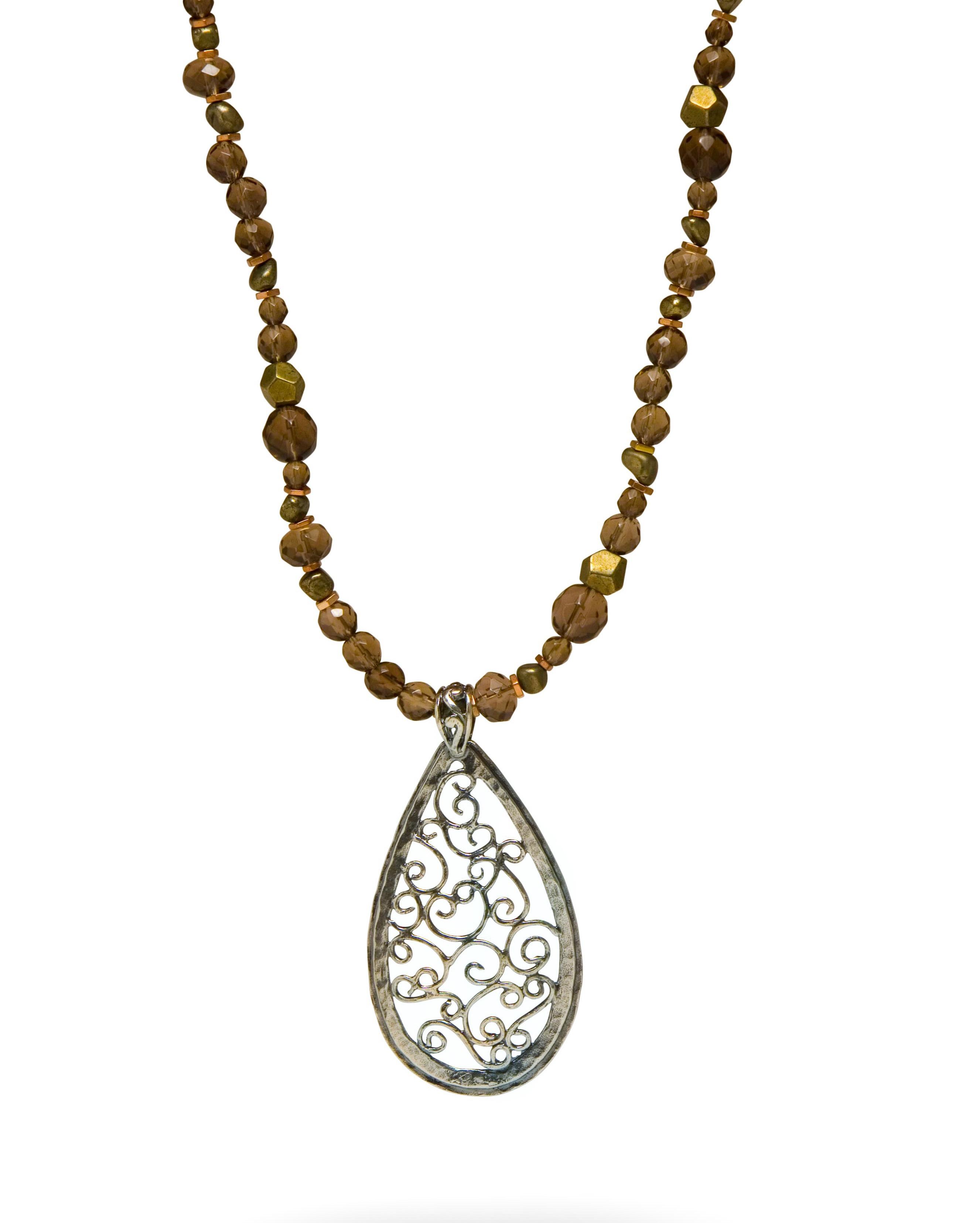 J1012 - Hilltribe Turquoise & Smoky Quartz Toggle Necklace $319