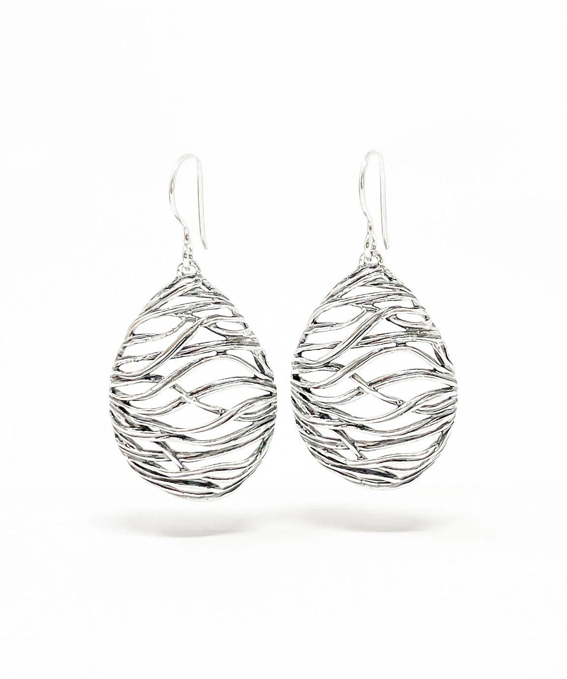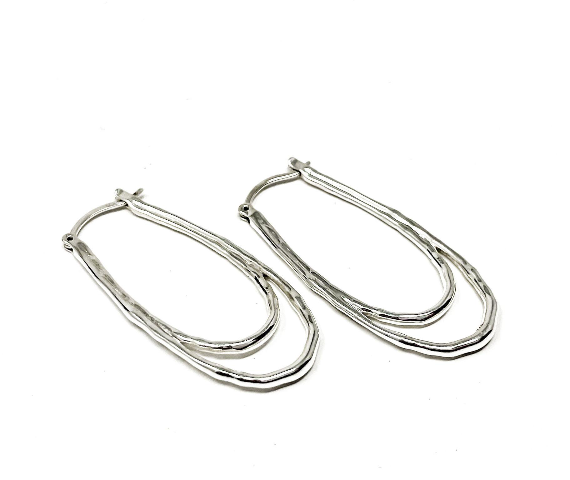 E1185 - Oblong Sterling Silver Earrings with Brass