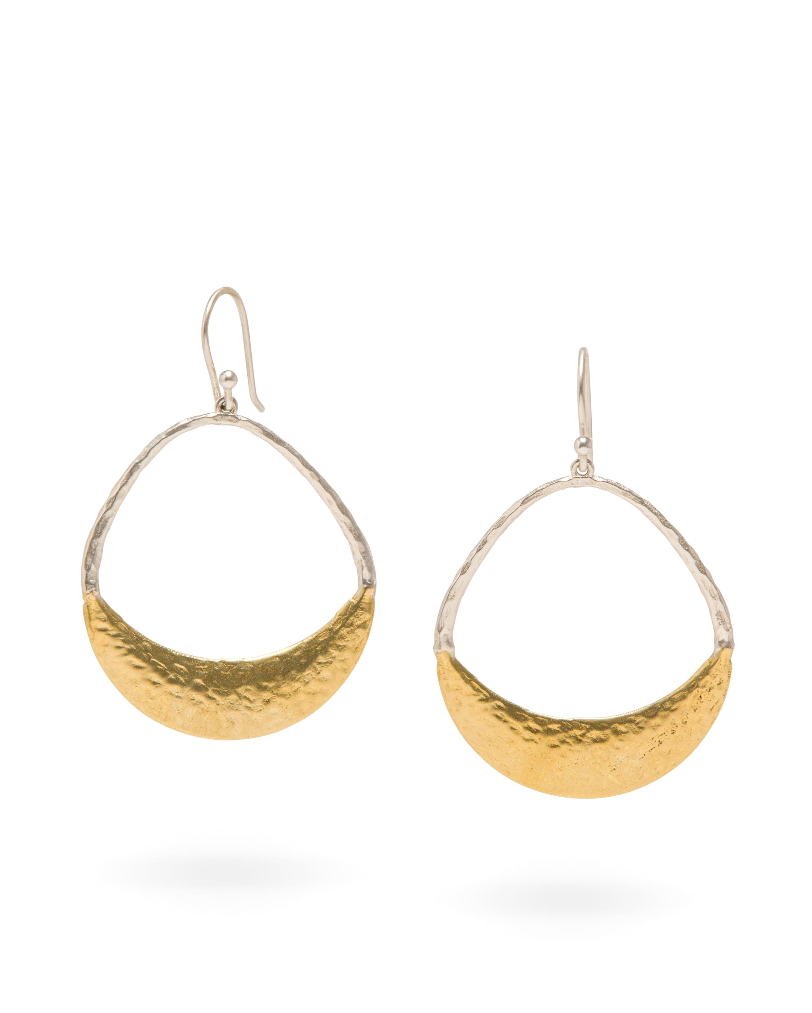 E1187 - Brass Crescent Moon Earrings $69 .925 Sterling Silver, Brass 2" length