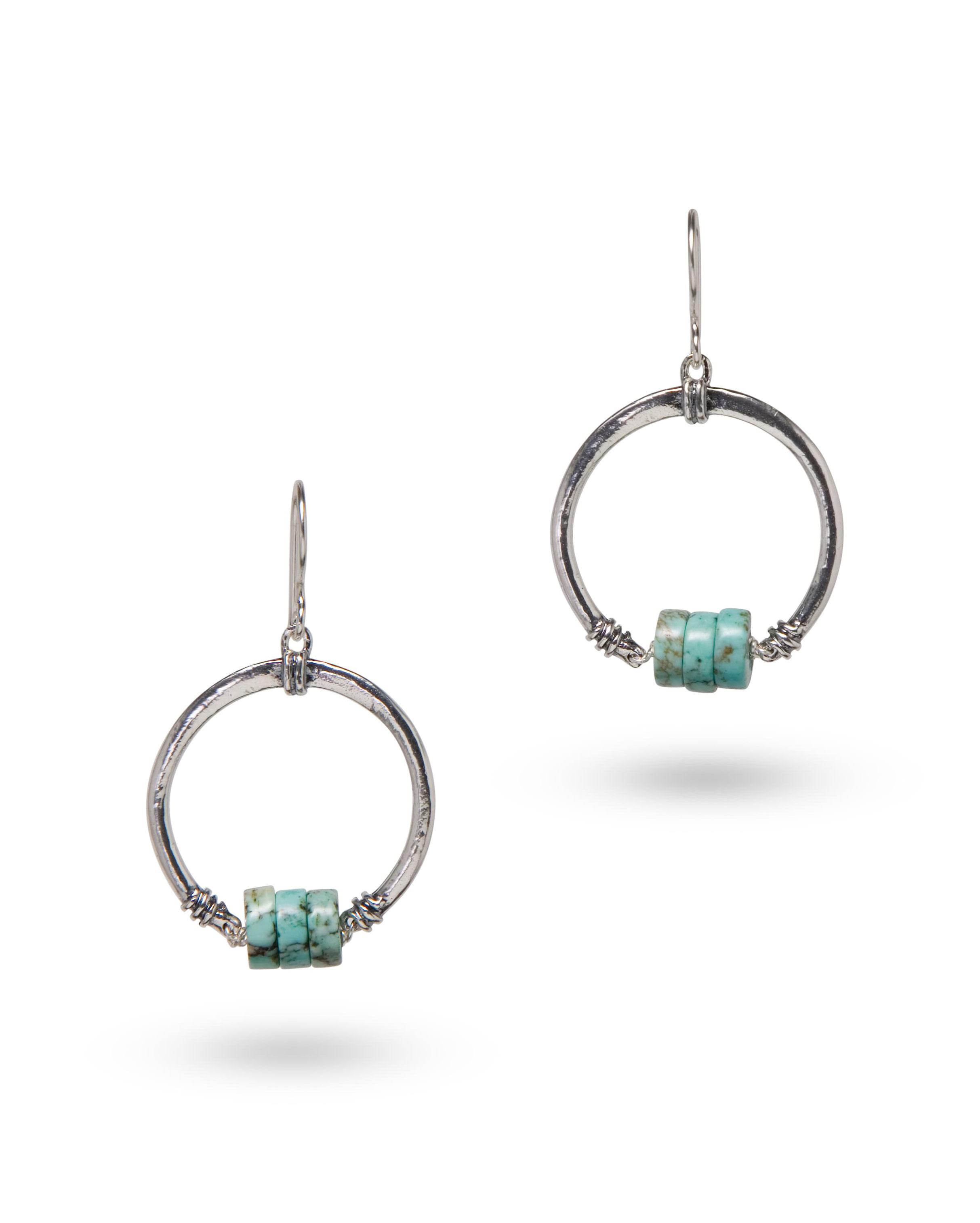 E1180 - Sterling Silver Circle Earrings with Turquoise Beads