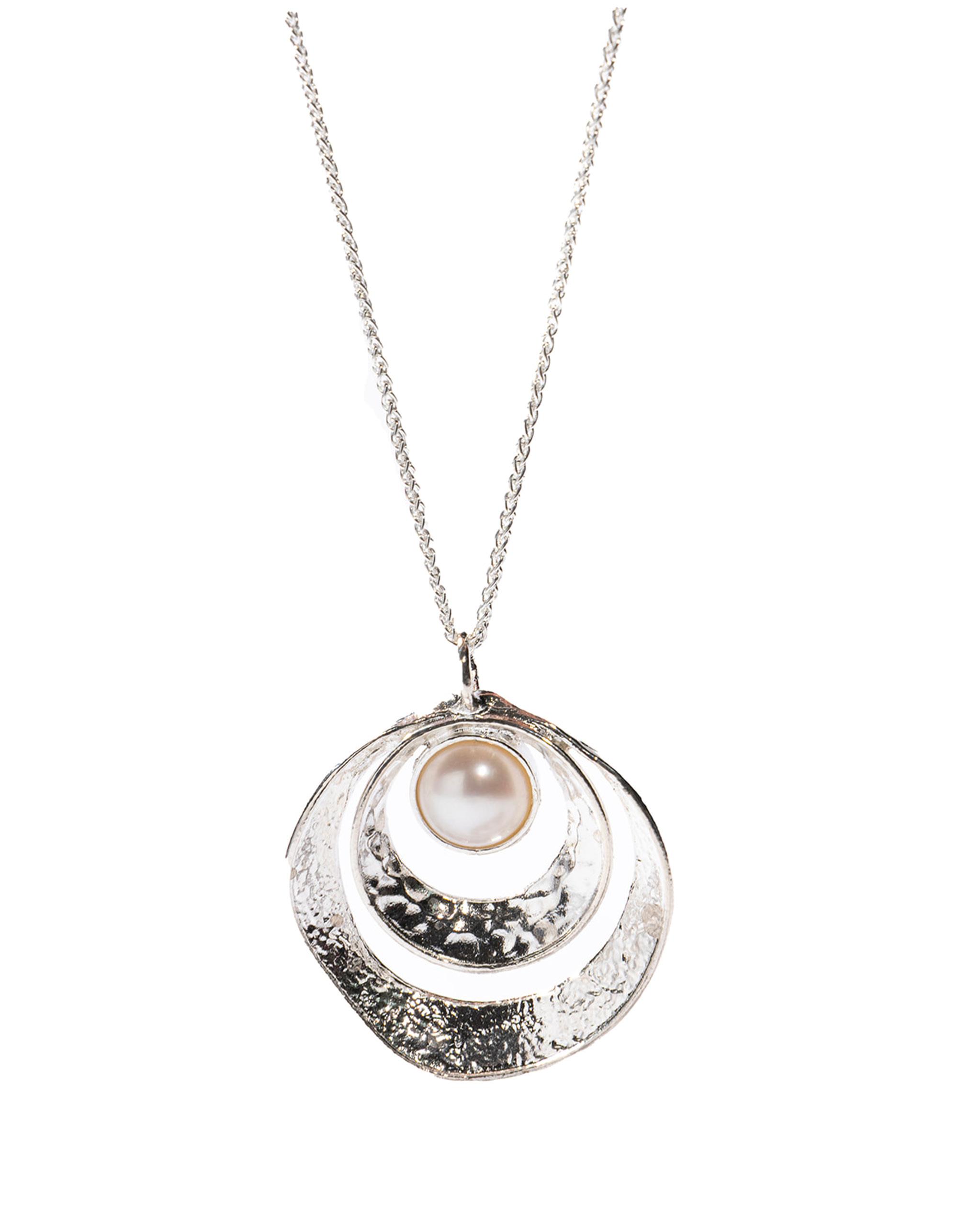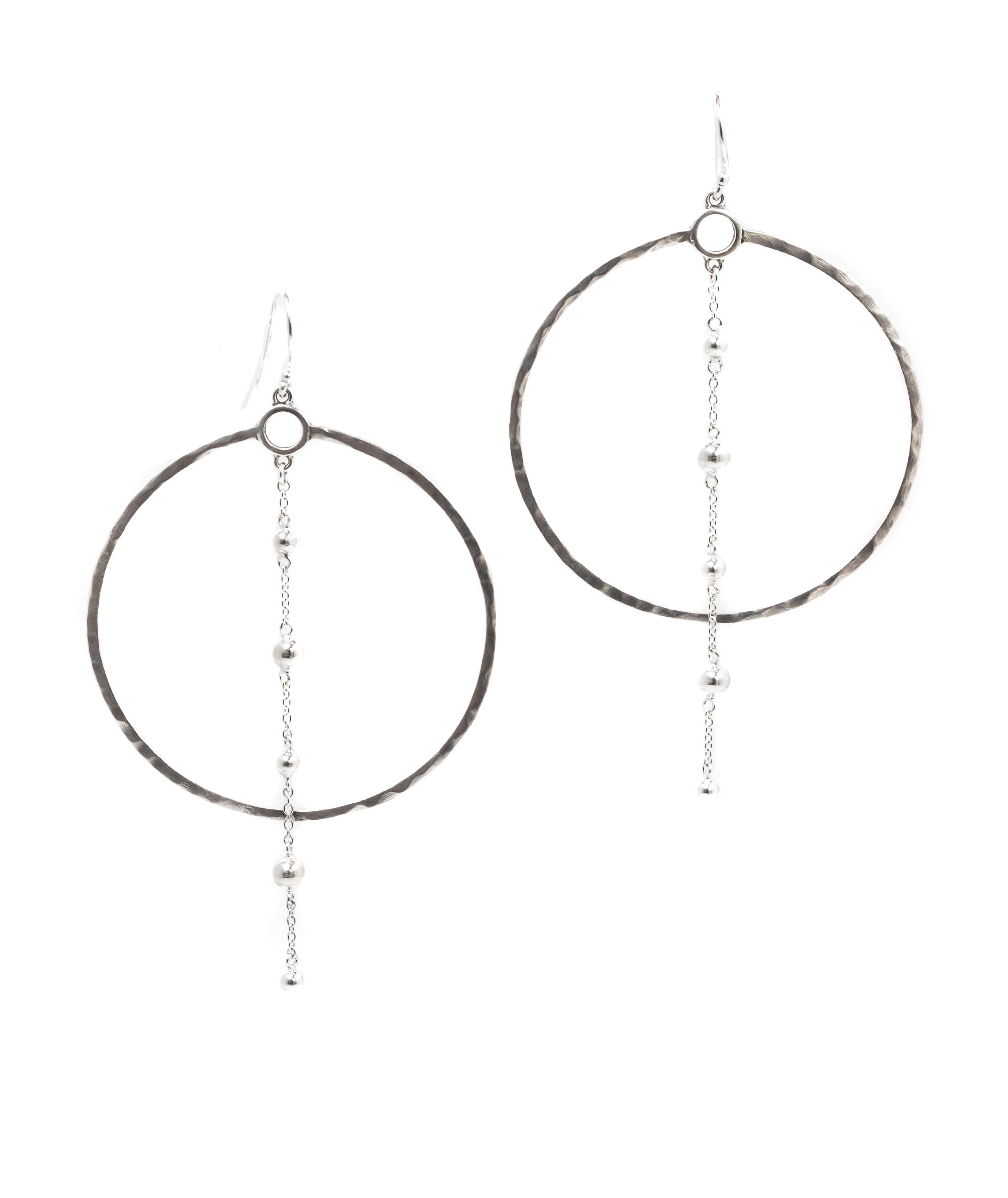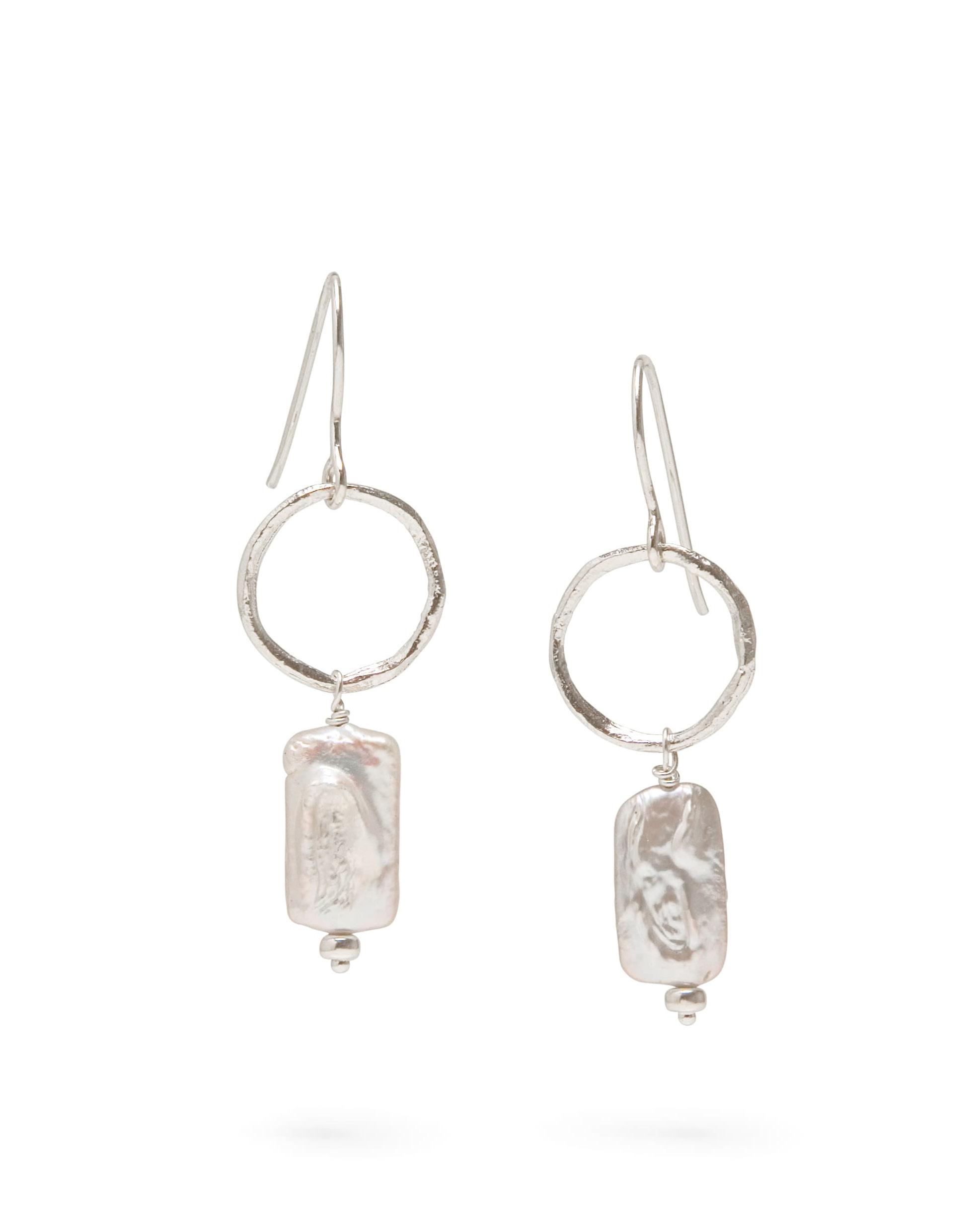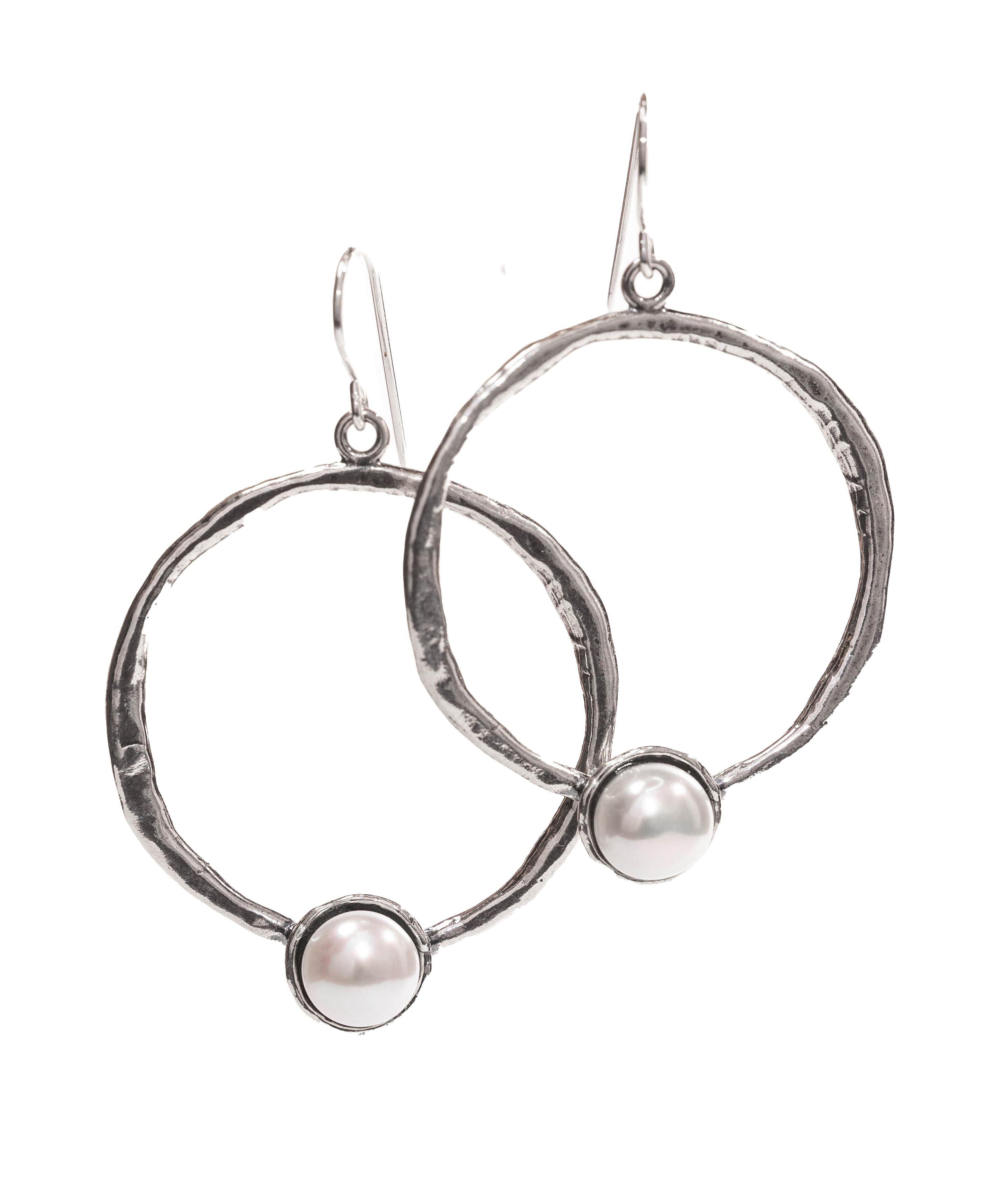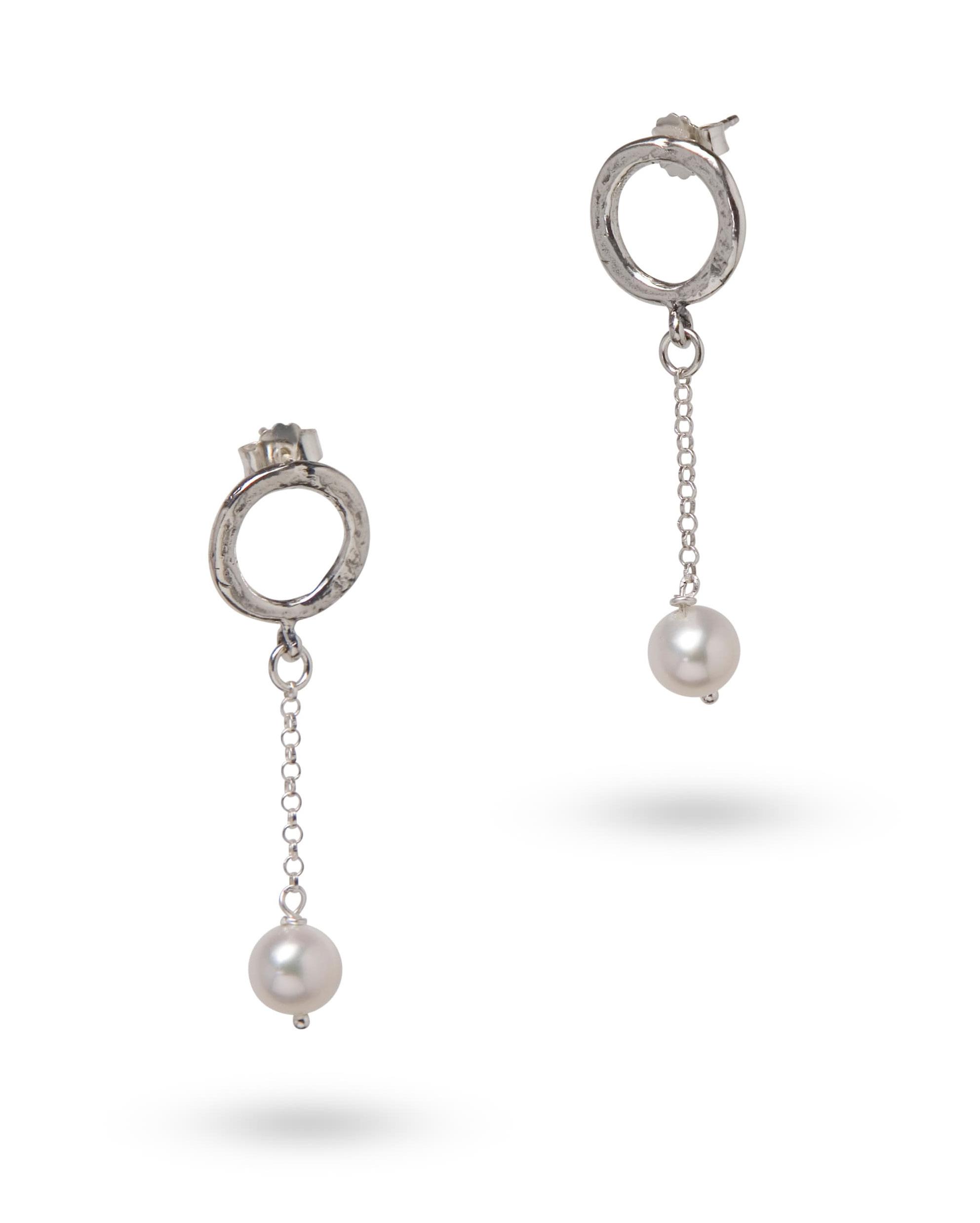 E1179 - Sterling Silver Circle with Hanging Pearl Post Earrings $69