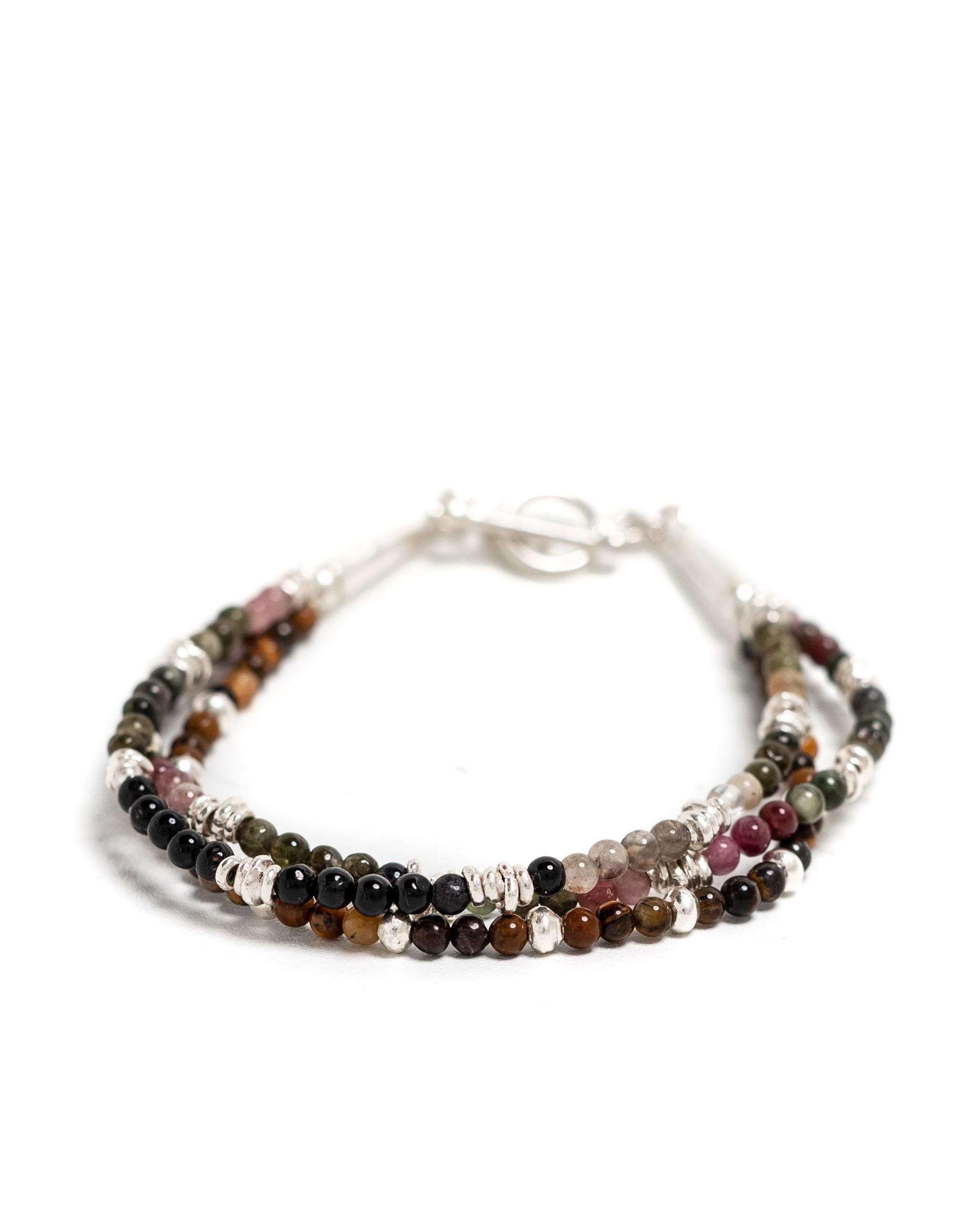 J1006 - Hilltribe Tourmaline Beaded Sterling Silver Toggle Bracelet