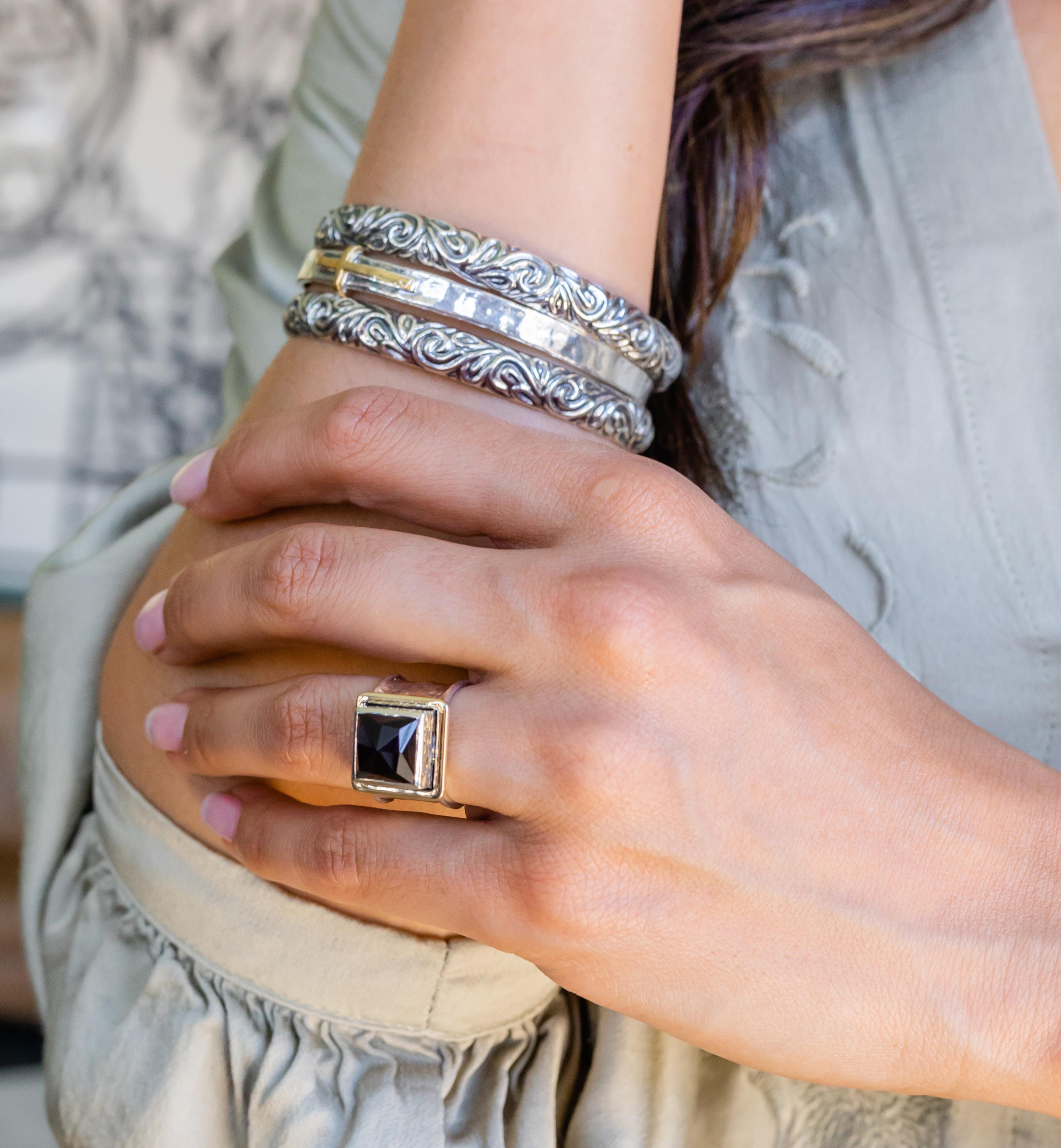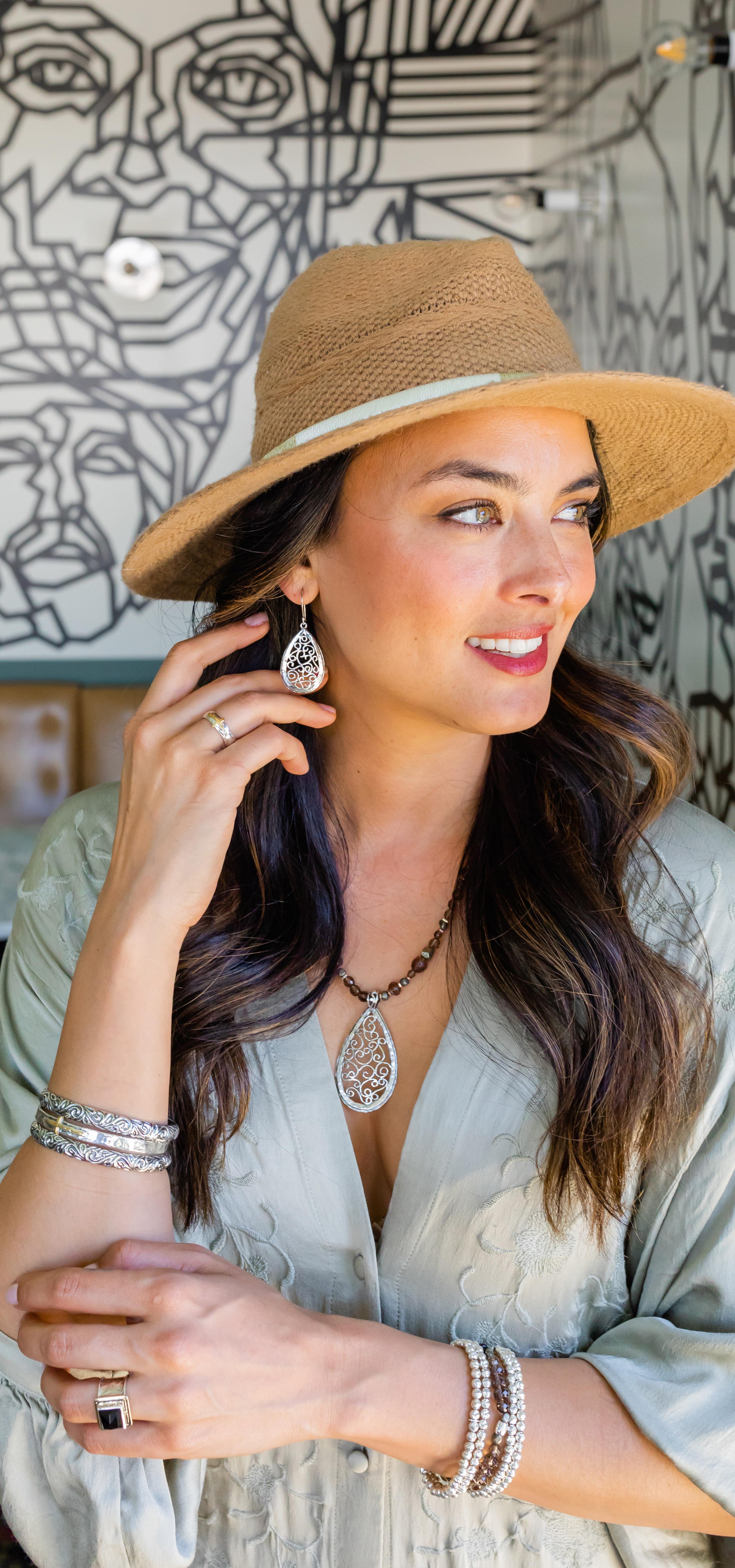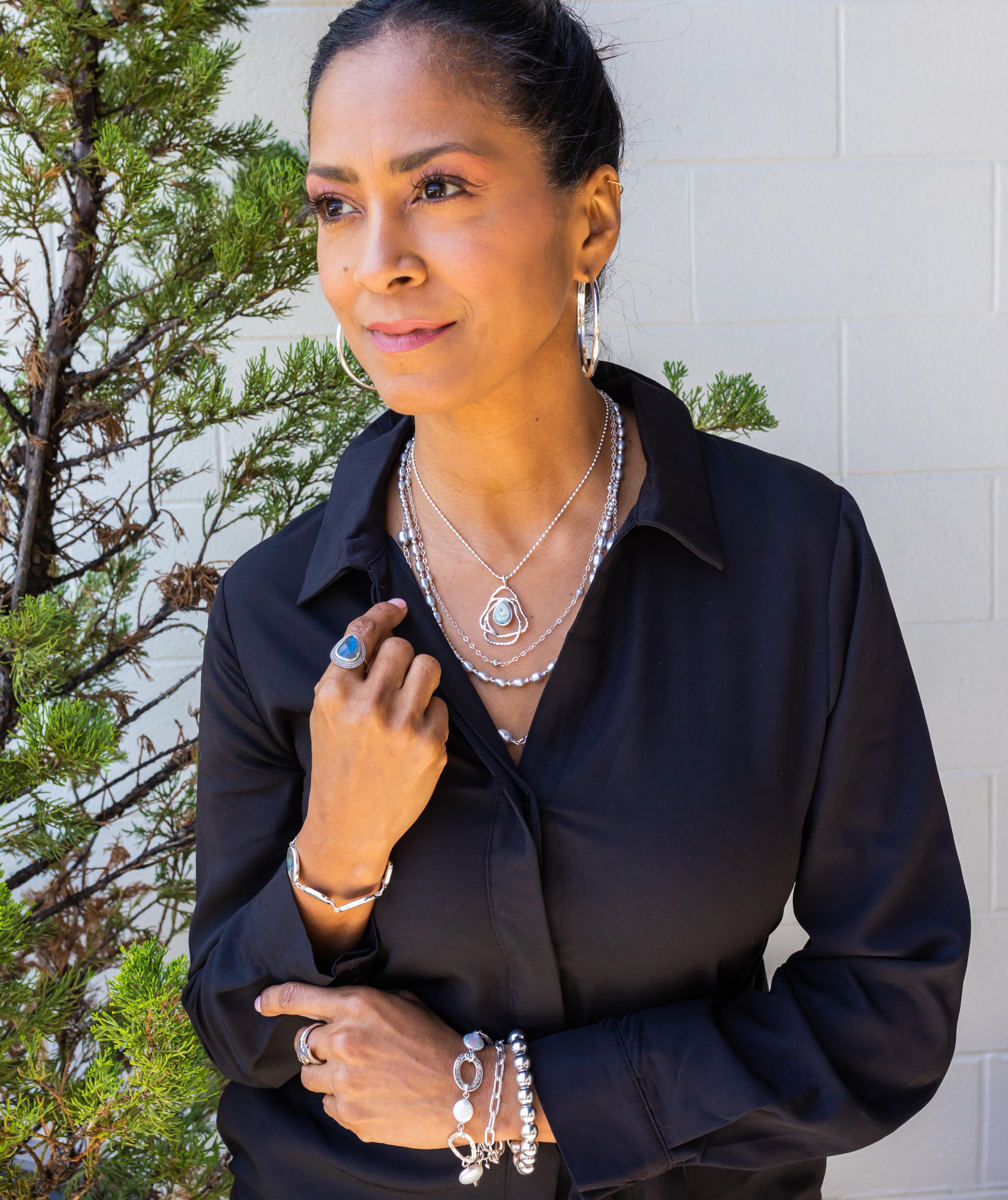 Each piece of Opulenza jewelry is uniquely designed and crafted with the utmost quality using .925 sterling silver, precious and semi-precious stones and leather.