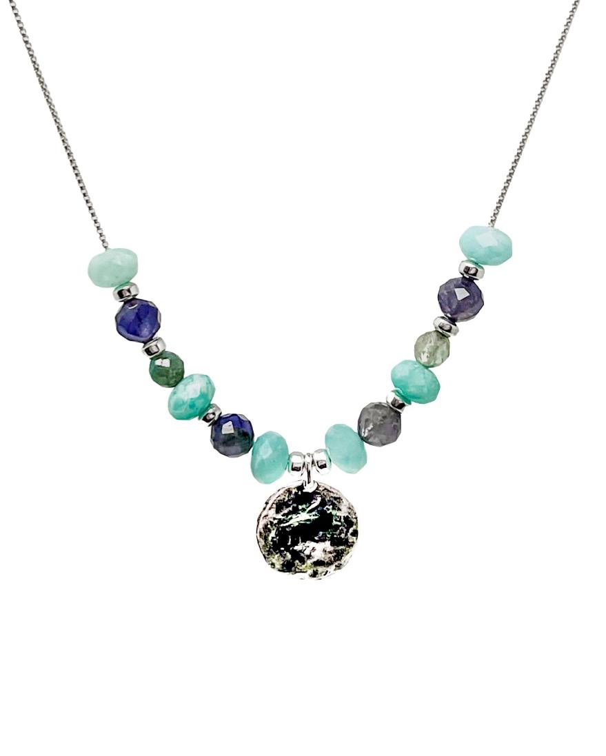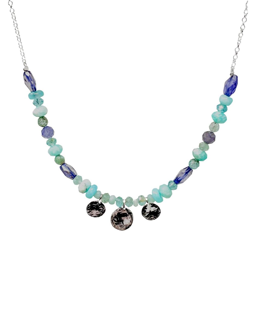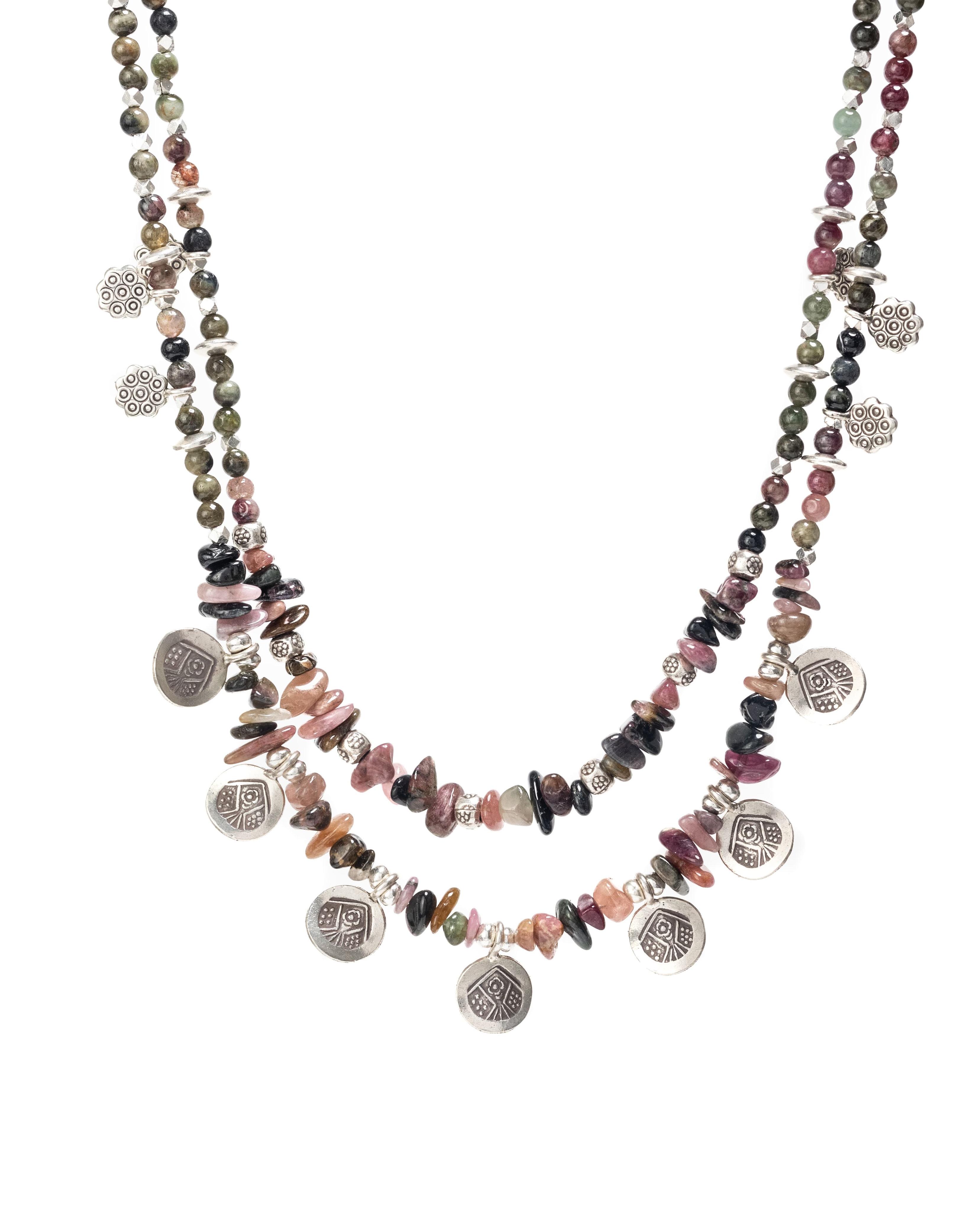 J1007 - Hilltribe Tourmaline Double Strand & Sterling Silver Coin Necklace $399