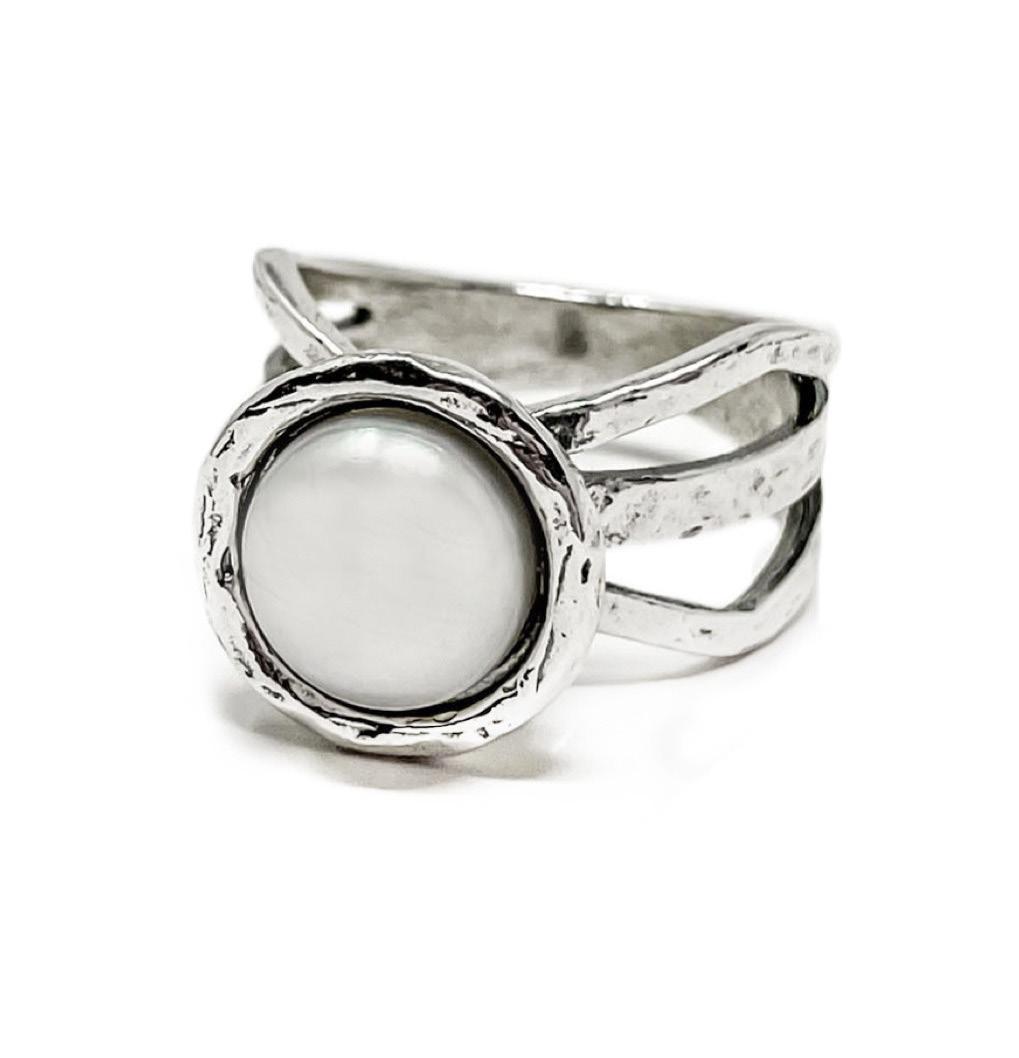R1079 - Cocktail Pearl & Sterling Silver Ring