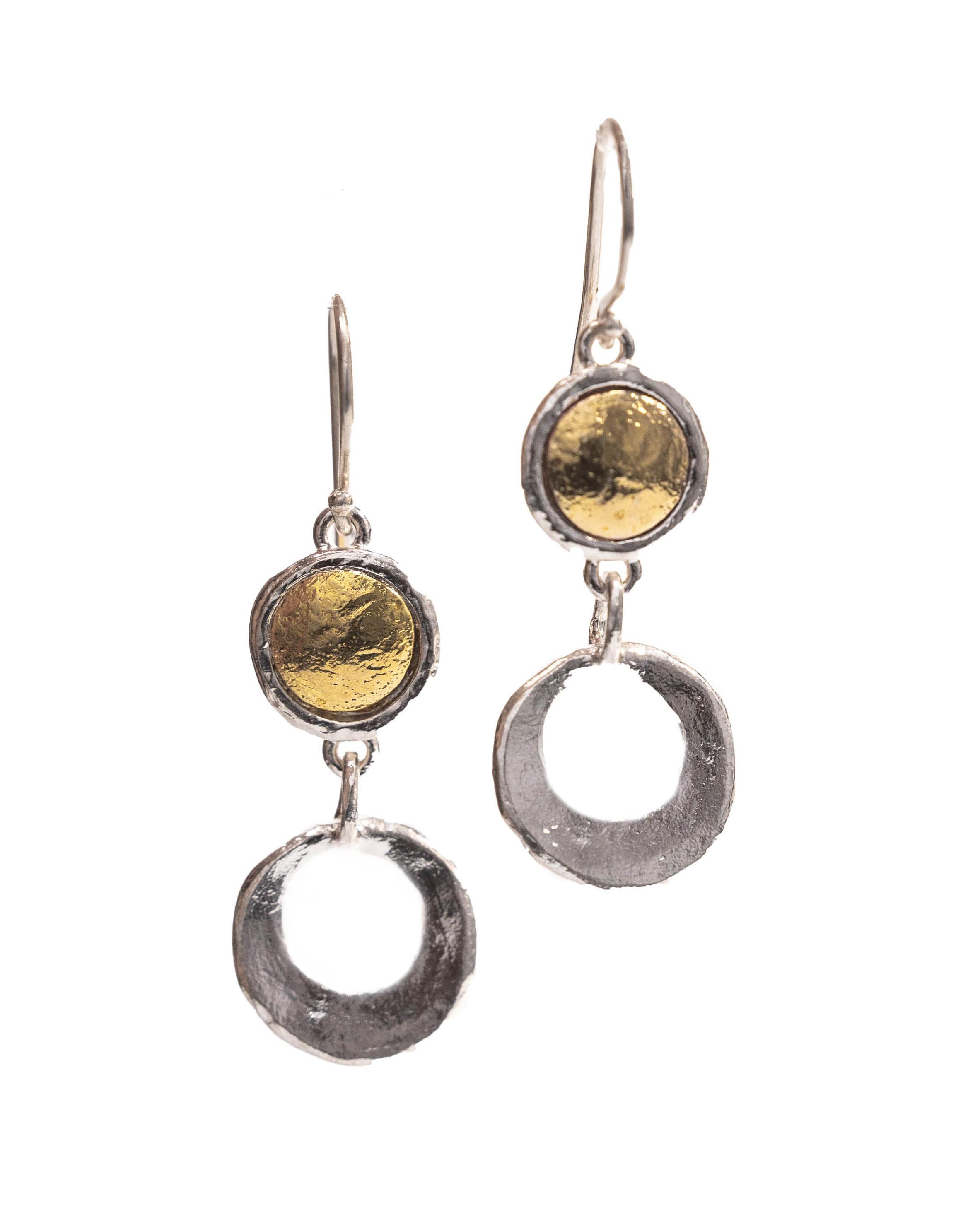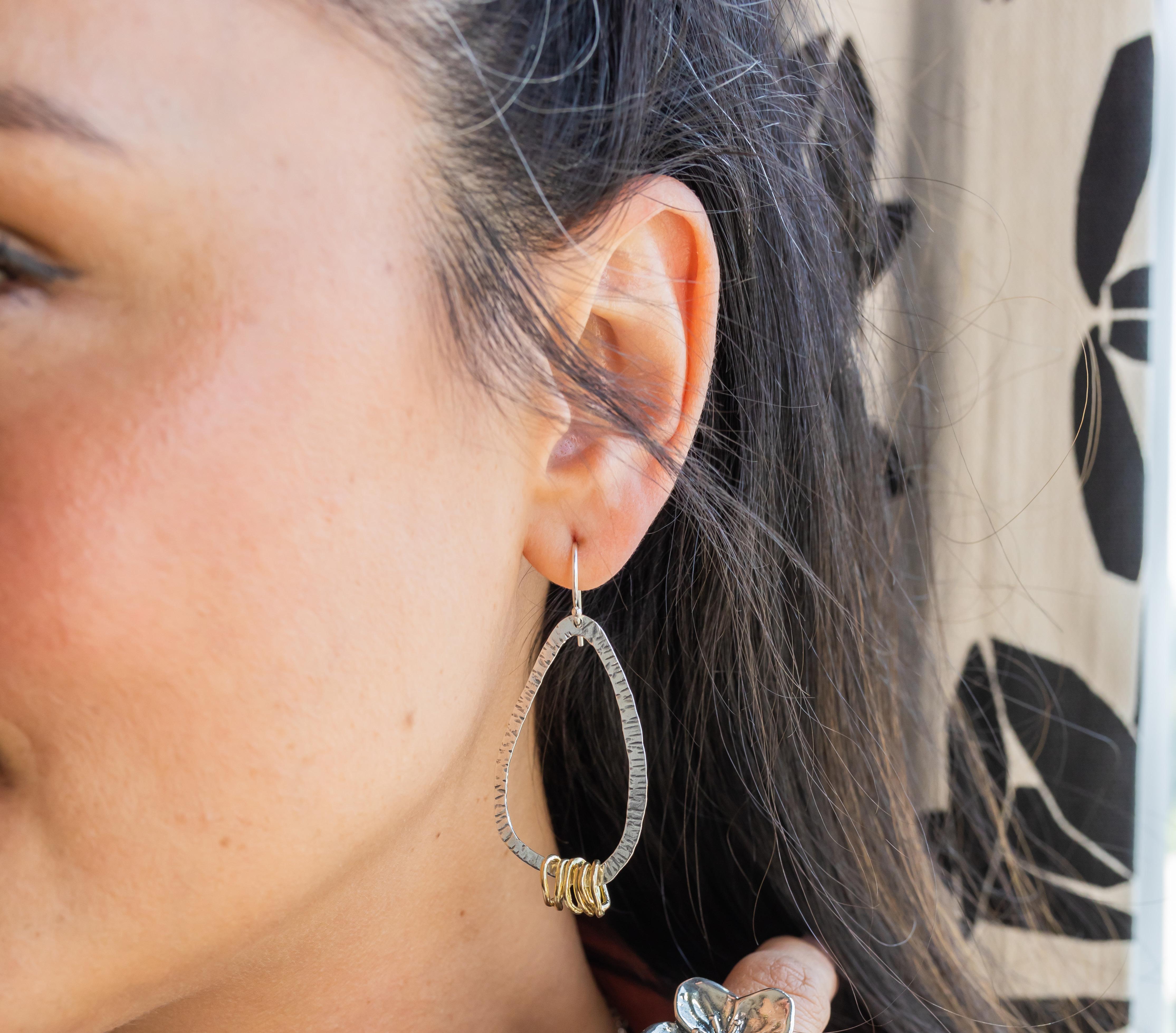 E1185 - Oblong Sterling Silver Earrings with Brass Rings
