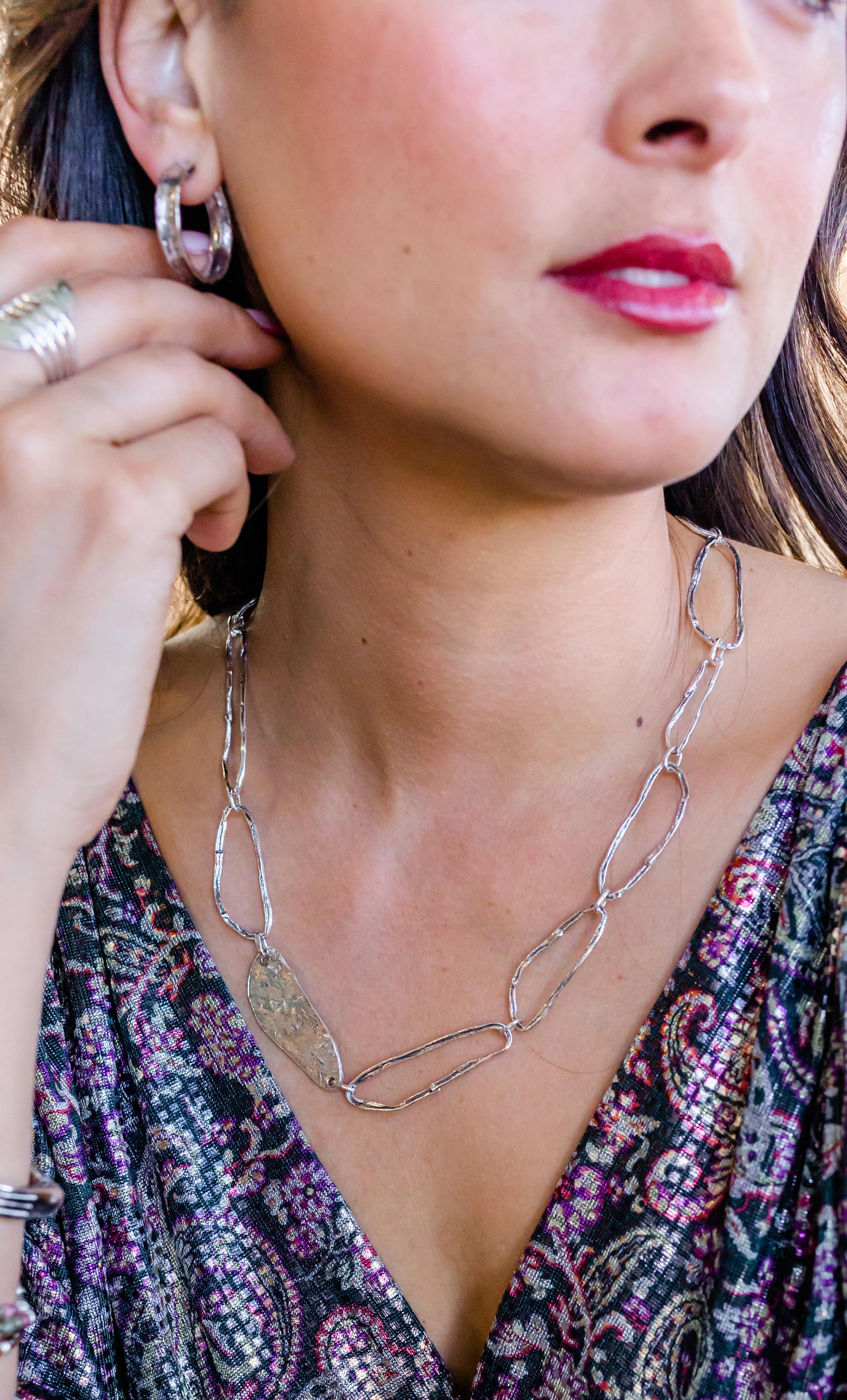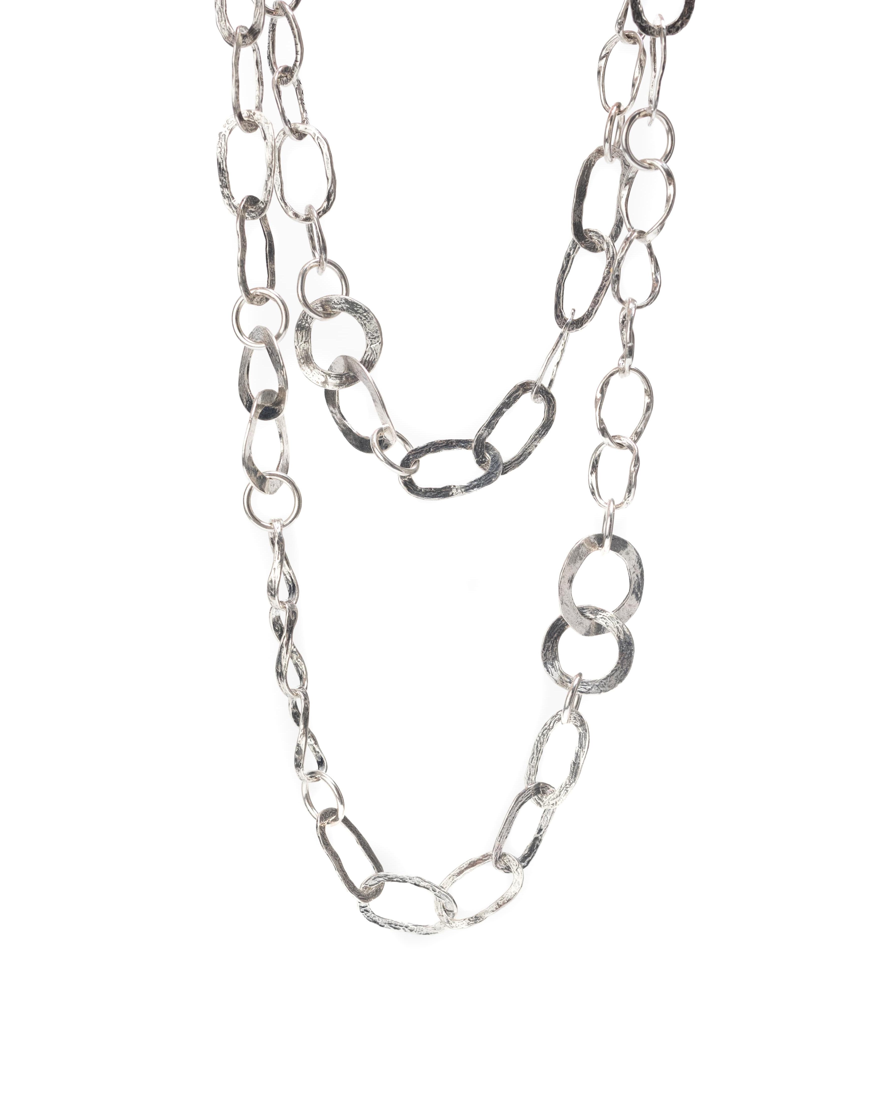 J1013 - Long Artisan Sterling Silver Link Necklace $479 .925 Sterling Silver 36" length